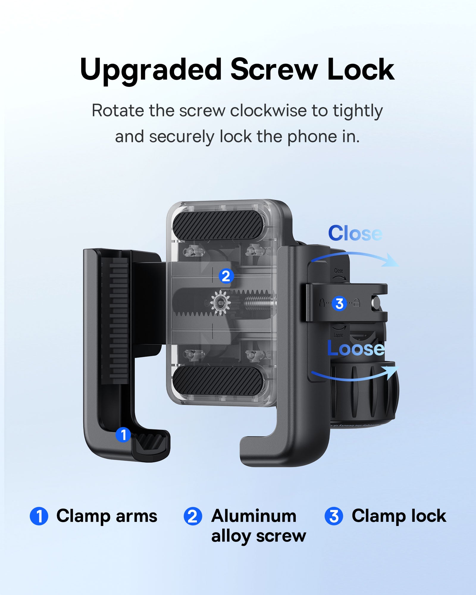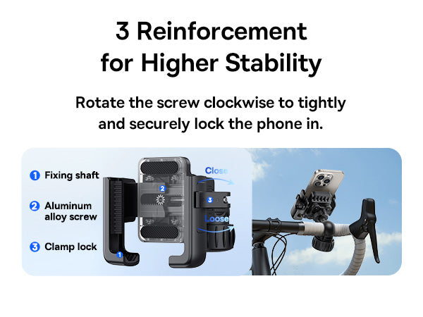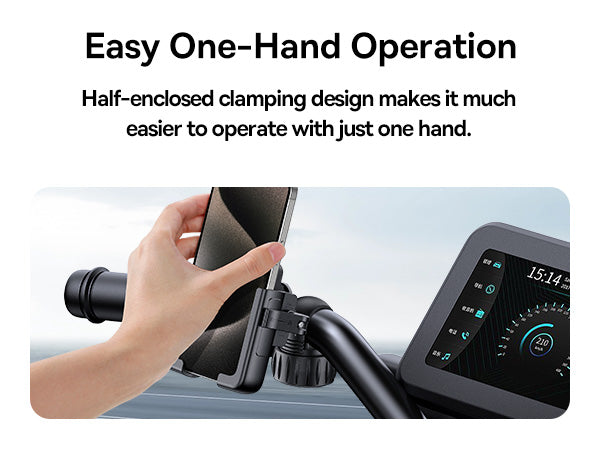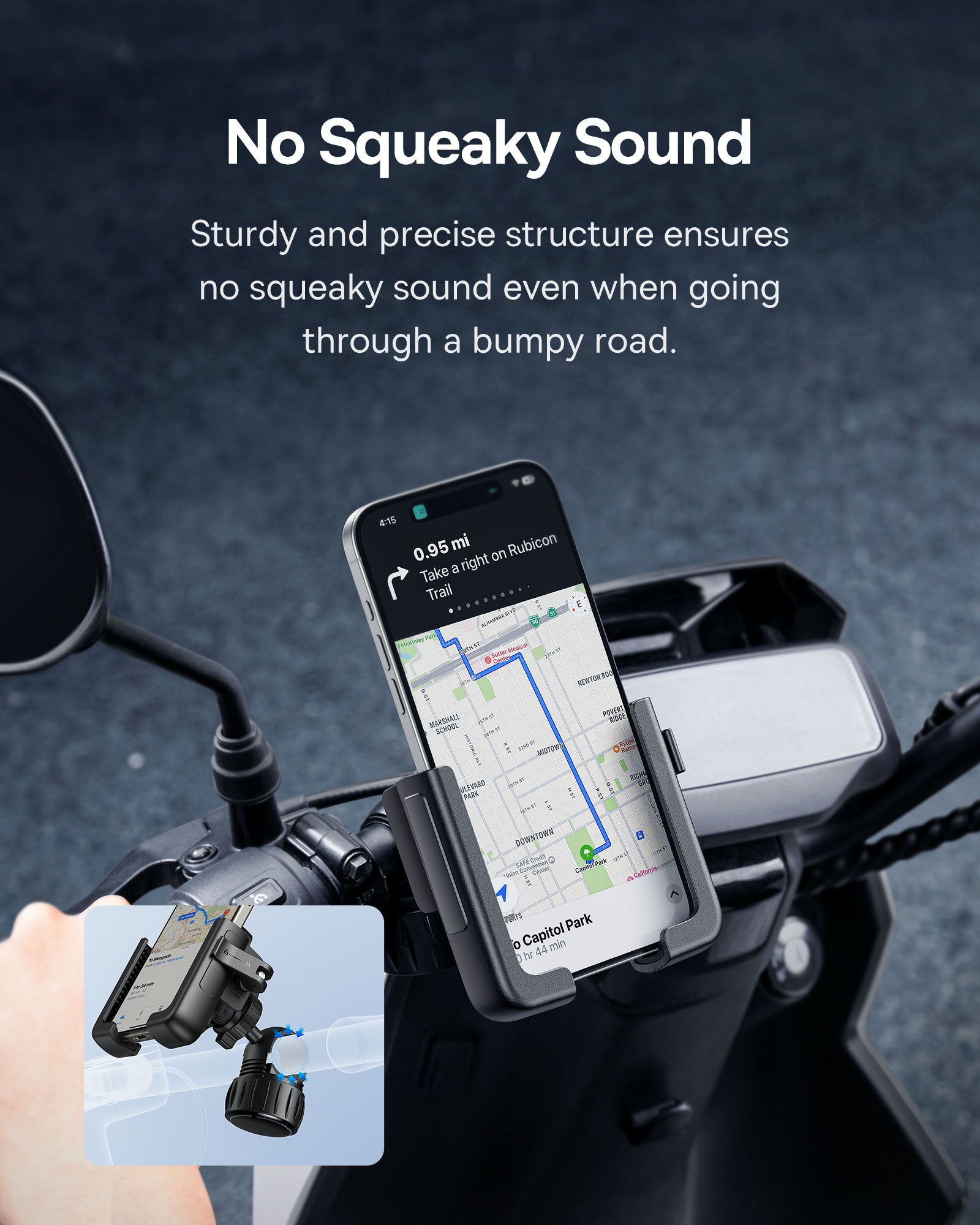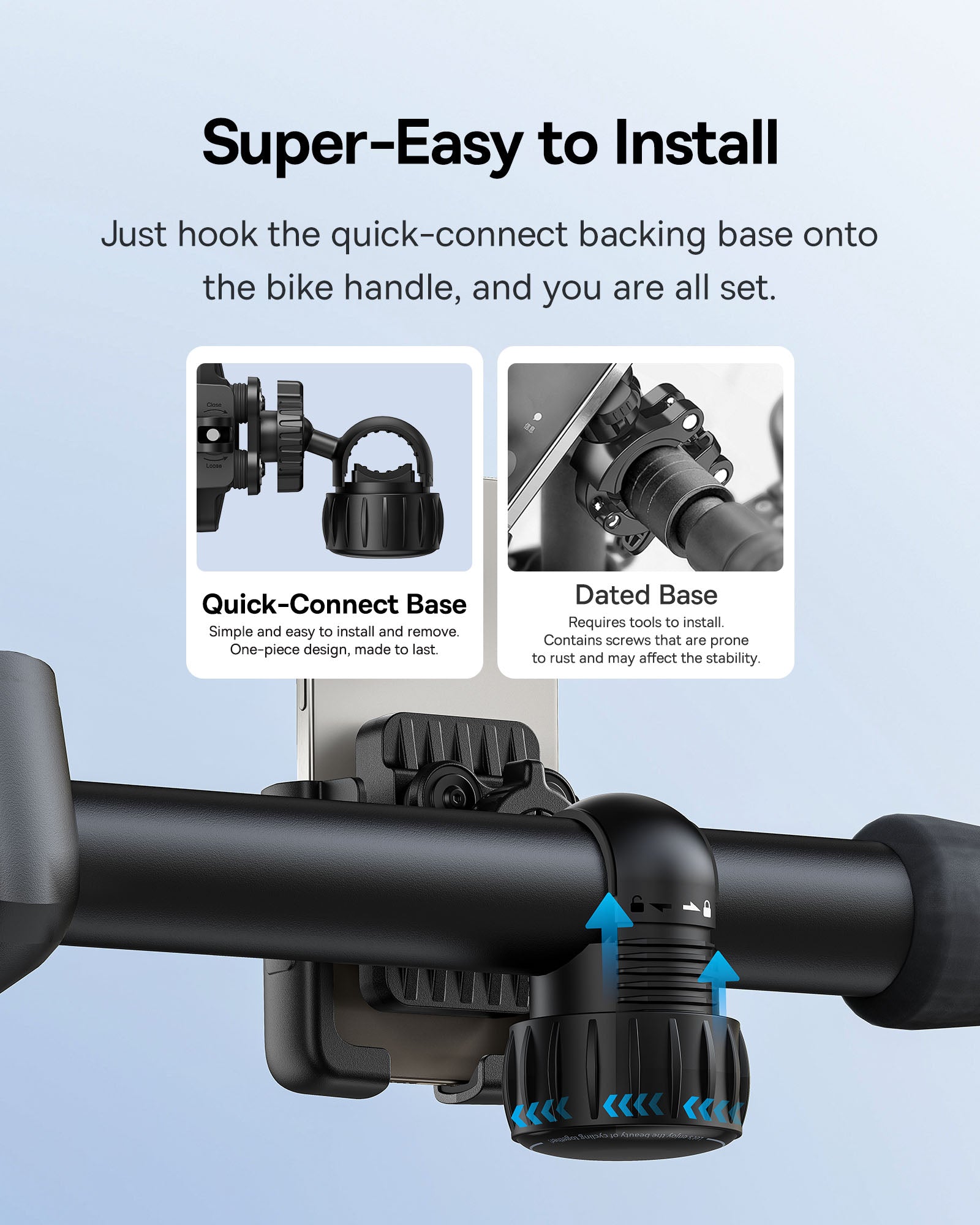 Držák QuickGo Series Bike Phone Mount pro řídítka je univerzální držák pro smartphone určený pro jízdu na kole, motocyklu či skútru. Upevní se na řídítka a umožní pohodlné a bezpečné používání telefonu během jízdy, včetně sledování navigace a mapy, zatímco máte volné ruce.