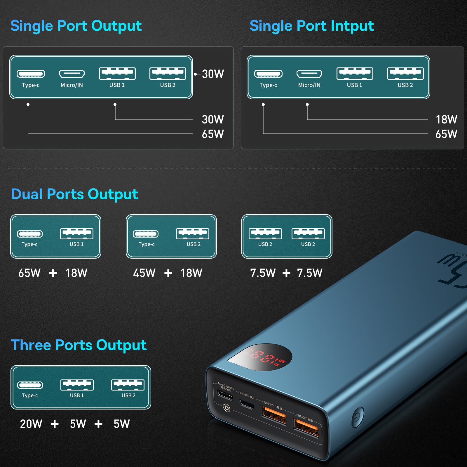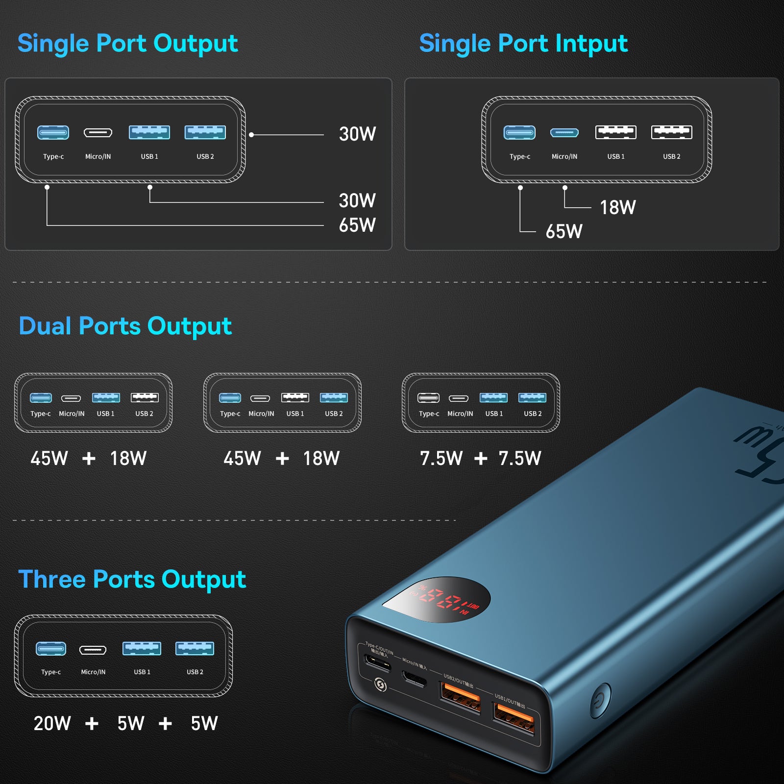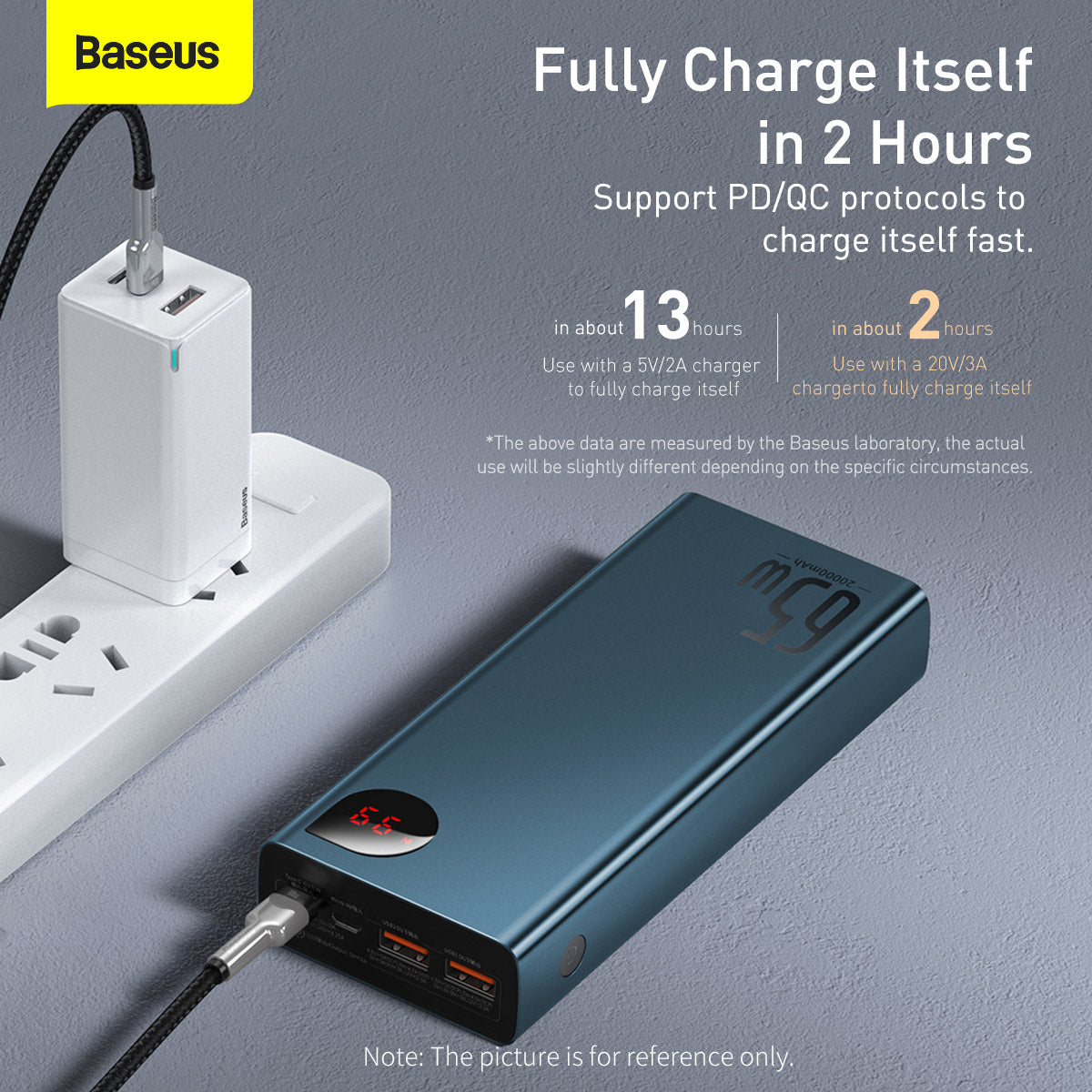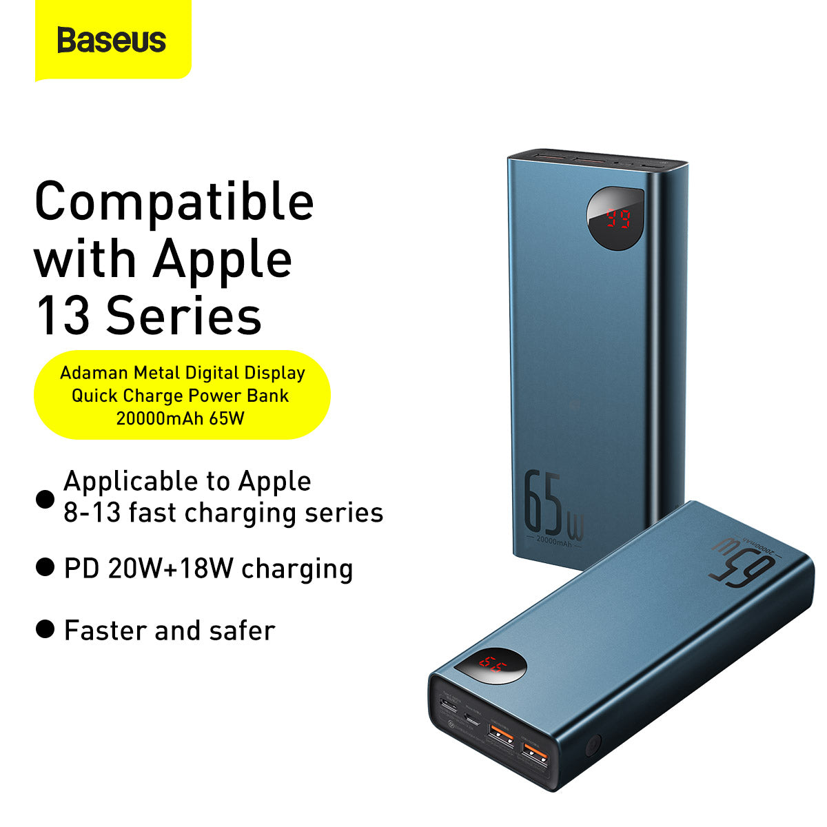 Baseus Adaman Metal je kompaktní powerbanka s kovovým tělem, která nabídne až 65 W výstupního výkonu a kapacitu 20 000 mAh. Disponuje vstupy micro USB a USB-C a dvěma USB výstupy, umožňuje oboustranné nabíjení a nabíjení více zařízení najednou (až 3 současně). Doba nabíjení samotné powerbanky je kolem 2 hodin. Podporuje Quick Charge 4.0 (USB-C) a Power Delivery 3.0 a je kompatibilní s Samsung Adaptive Fast Charging a Huawei SCP 5A. LED indikace zobrazuje zbývající energii. Je lehká (450 g) a tenká (27 mm), s odolným kovovým tělem. Je kompatibilní s množstvím zařízení včetně Steam Deck, AirPods, Apple Watch, Surface Pro, Oculus a Nintendo Switch. Vybavena BPS II ochranou proti přepětí, zkratu, elektromagnetickému poli, přehřátí a přebití.