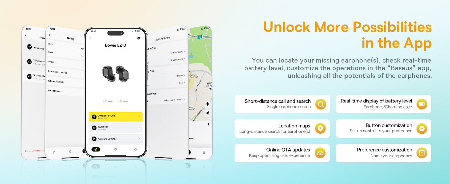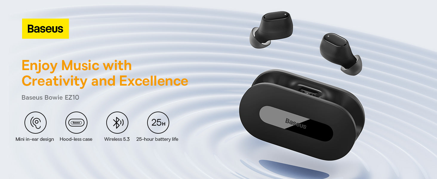 Baseus Bowie EZ10 jsou lehká bezdrátová sluchátka s Bluetooth 5.3 pro spolehlivé spojení a plynulý zvuk. Bez kabelů poskytují plnou svobodu pohybu a pohodlného držení v uších. Součástí balení je kompaktní nabíjecí pouzdro, které slouží jako power banka a chrání sluchátka; nabíjení pouzdra probíhá přes USB-C. Díky rychlému nabíjení získáte až 2 hodiny poslechu za 10 minut. Sluchátka mají nízkou latenci (0,06 s) a jejich membrány vyvažují vysokou, střední a nízkou frekvenci. Ovládání tlačítky na sluchátkách a dostupné Smart Control umožní vyhledat sluchátka a aplikace zkontrolovat stav baterie. Výdrž na jedno nabití cca 5 hodin; s pouzdrem až 25 hodin. Dosah Bluetooth 10 m, frekvence 20 Hz–20 kHz, konektor USB-C, barva Černá.
