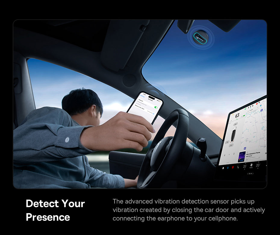 Hmotnost pouhých 4,5 ga ergonomický design z ABS a PC zajišťující pohodlné nošení po celý den, s podsvícením pro snadné nalezení v autě. Ovládání je dotykové, k dispozici je hlasový asistent a detekce vibrací pro lepší použití při uzavření dveří.