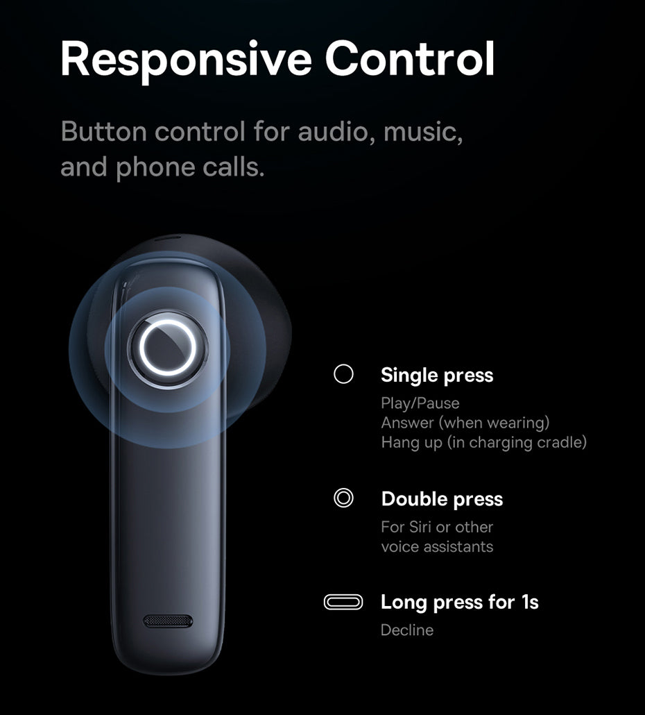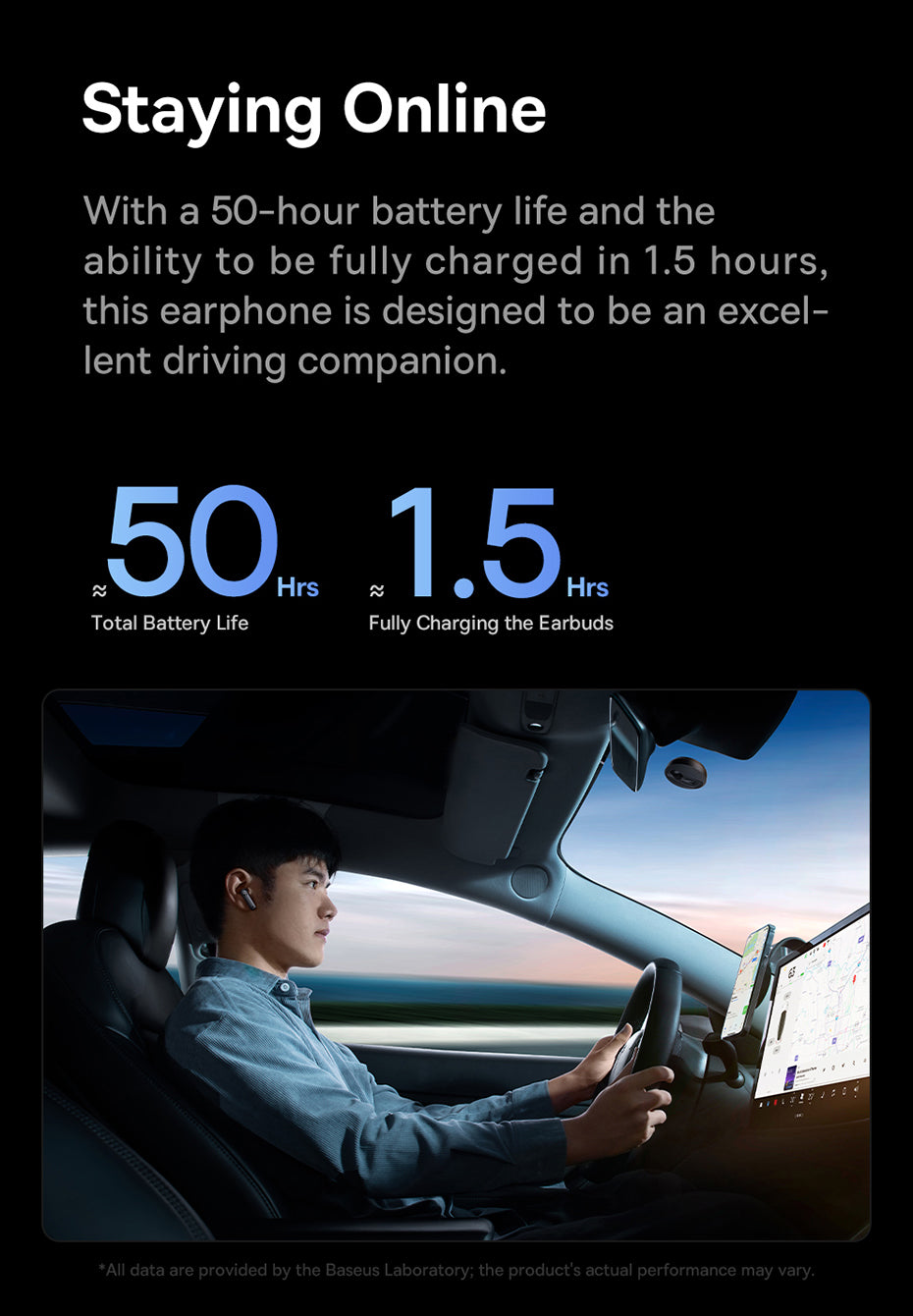 Bezdrátové sluchátko Baseus Bowie CM10 je ideální volbou pro řidiče, kteří chtějí nejvyšší kvalitu zvuku v hlučném prostředí. Sluchátka potlačují hluk a zlepšují kvalitu hlasu pro čisté hovory při poslechu hudby. 50hodinová výdrž baterie a solární nabíjecí platformy včetně nabíjení během jízdy.