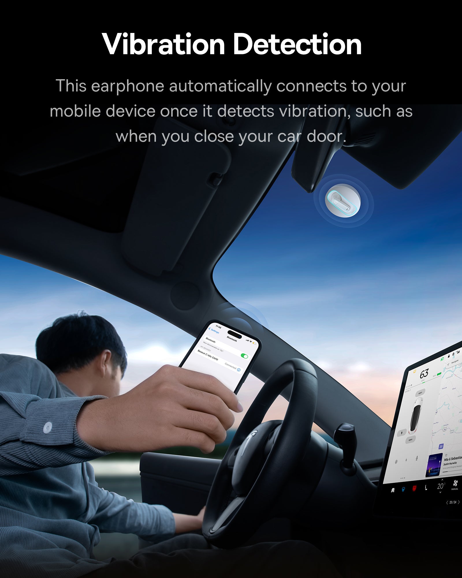 Bezdrátové sluchátko Baseus Bowie CM10 je určeno pro řidiče, kteří chtějí špičkový zvuk i při jízdě v hlučném prostředí. Nabízí potlačení hluku a mikrofony s redukcí šumu pro lepší kvalitu hovoru a hudby, dotykové ovládání a aktivaci hlasového asistenta. Unikátní solární nabíjecí platforma umožňuje ekologické nabíjení a až 50hodinovou provozní dobu; magnety u držáku zajišťující spojení s nabíjecí stanicí. Lehký a ergonomický design váží 4,5 gaz ABS/PC materiály s praktickým podsvícením zůstává pohodlný po celý den. Funkce detekce vibrací zjednodušují použití v autě, třeba když zavřete dveře. Aplikace Baseus rozšíří možnosti nastavení (polohování, OTA aktualizace) a zajišťuje kompatibilitu se zařízením Bluetooth. Model je vhodný pro dlouhé cesty a handsfree telefonování.