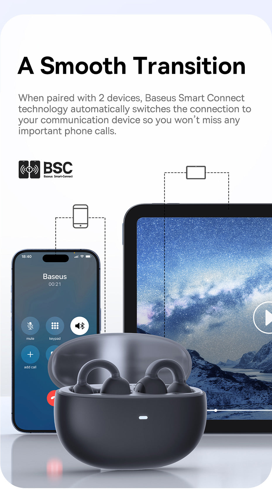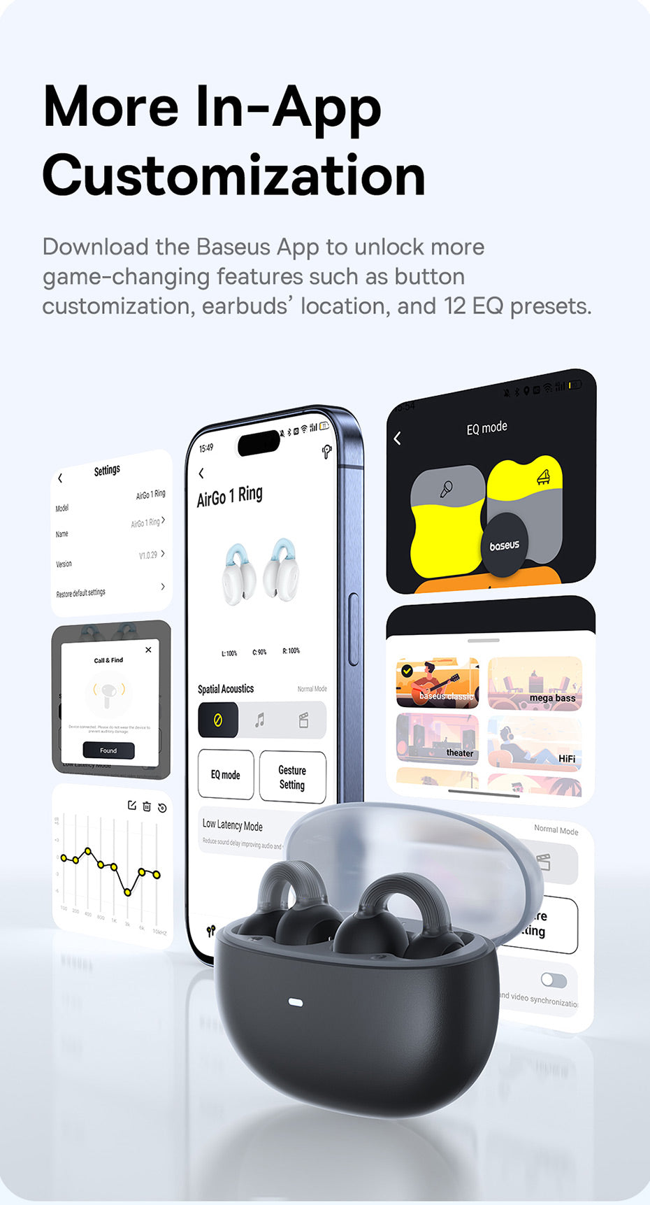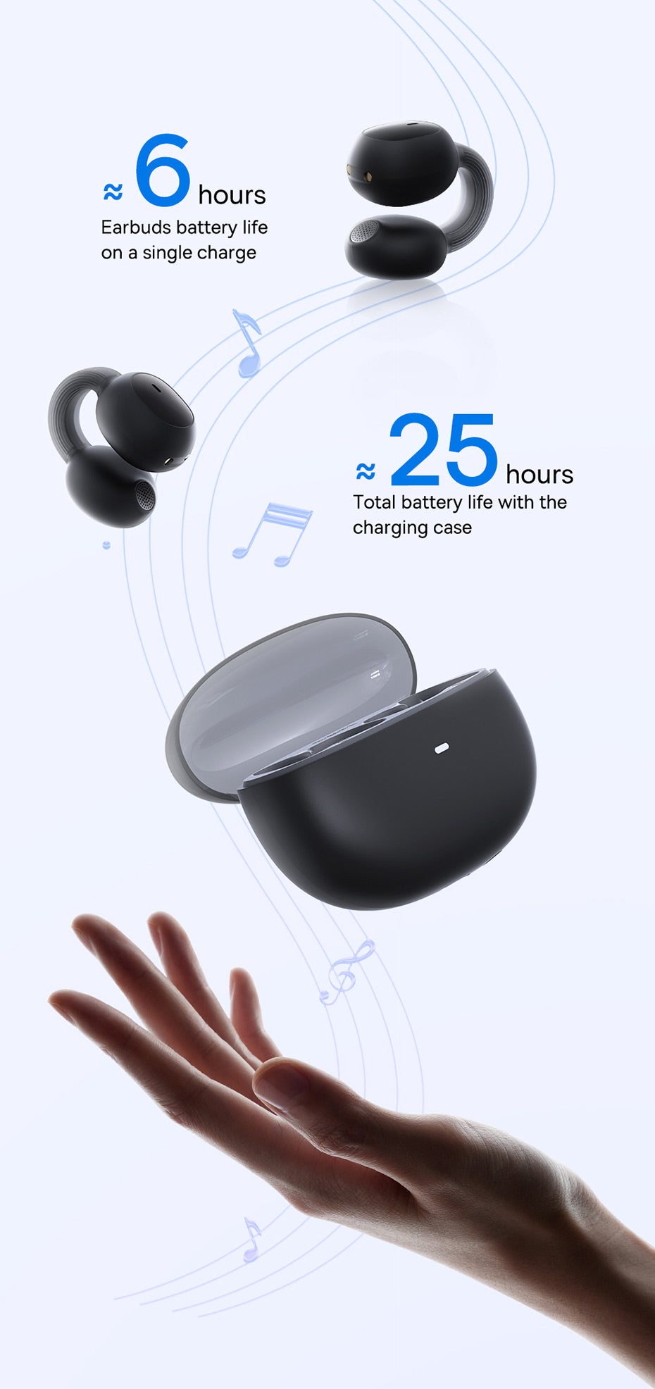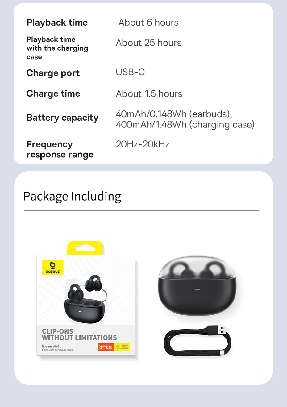 Baseus AirGo 1 TWS jsou skutečně bezdrátová sluchátka určená pro každodenní poslech hudby, hraní her i sledování filmů na cestách. Díky odolnosti vůči vodě a potu jsou vhodné i pro aktivní používání, ačkoli nejsou primárně určeny pro sport. Výdrž až 25 hodin na jedno nabití včetně pouzdra (6 hodin na sluchátkách). Nabíjení probíhá přes USB-C a dotykové ovládání je intuitivní. Připojení je stabilní s nízkou latencí díky Bluetooth 5.3. Sluchátka jsou True Wireless a obsahují mikrofon pro hovory a možnost přijmout hovor. ANC ani ambientní režimy nejsou k dispozici. Frekvenční rozsah 20 Hz – 20 000 Hz.