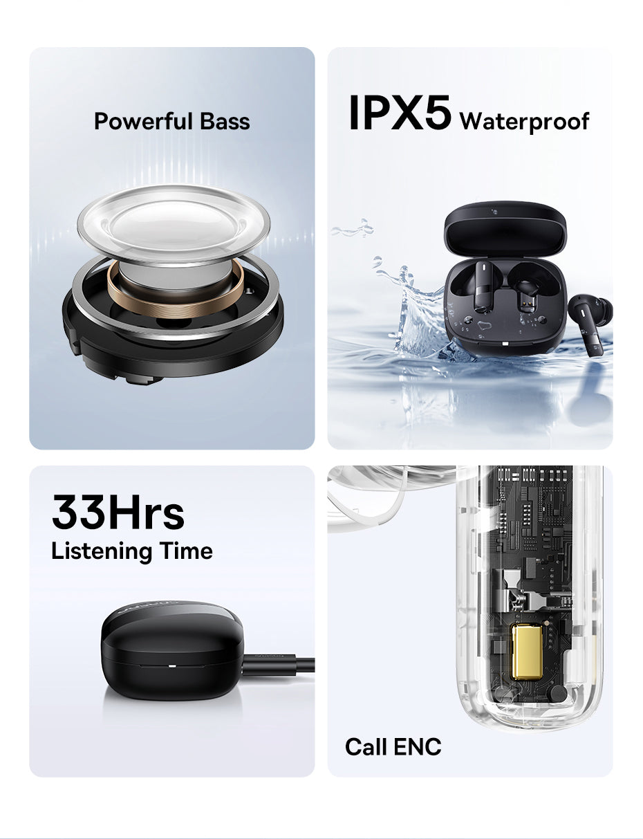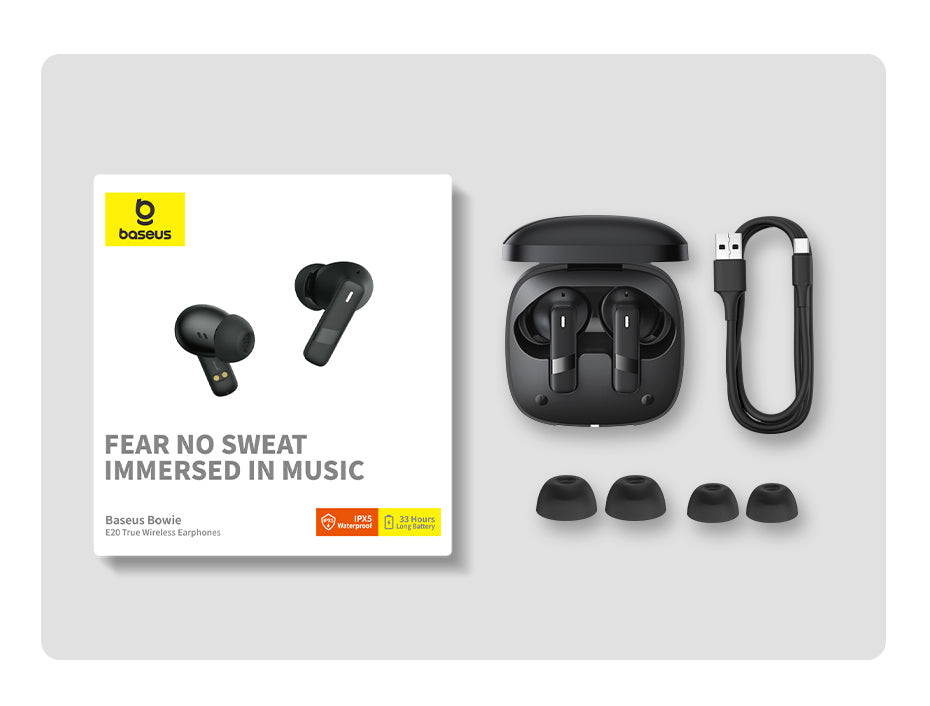 Skutečně bezdrátová sluchátka Baseus Bowie E20 nabízejí diskrétní poslech hudby, hraní her a sledování filmů bez kabelů. Díky IPX5 odolnosti snesou i zamlžení při sportu a poskytují až 33 hodin výdrže s nabíjecím pouzdrem (6 h na nabití sluchátek). Rychlé nabíjení přes USB-C a stabilní Bluetooth 5.3 s minimální latencí zajišťující plynulé přehrání i při videu a hrách. Dotykové ovládání na sluchátkách umožňuje přepínat skladby, zvyšovat či snižovat hlasitost a přijímat hovory. Sluchátka jsou in-ear (špunty) s mikrofonem, vhodná pro sport i každodenní použití. Maximální komfort a bez kompromisů na kvalitě zvuku bez drátů.