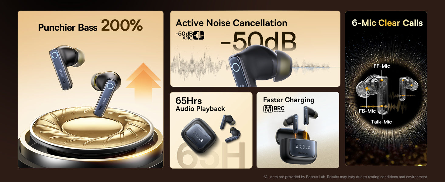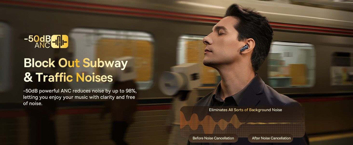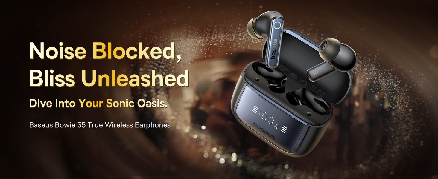 Baseus Bowie 35 v kosmické černé nabízí bezdrátová sluchátka s Bluetooth v5.3, 6 mikrofonů ENC pro čisté hovory a aktivní potlačení hluku (ANC) až do -50 dB. Disponuje digitálním displejem a výdrží baterie až 8 hodin. S IPX4 voděodolností zvládne lehké stříkání a hrnec, díky ergonomickému designu jsou pohodlné a při delším poslechu.
