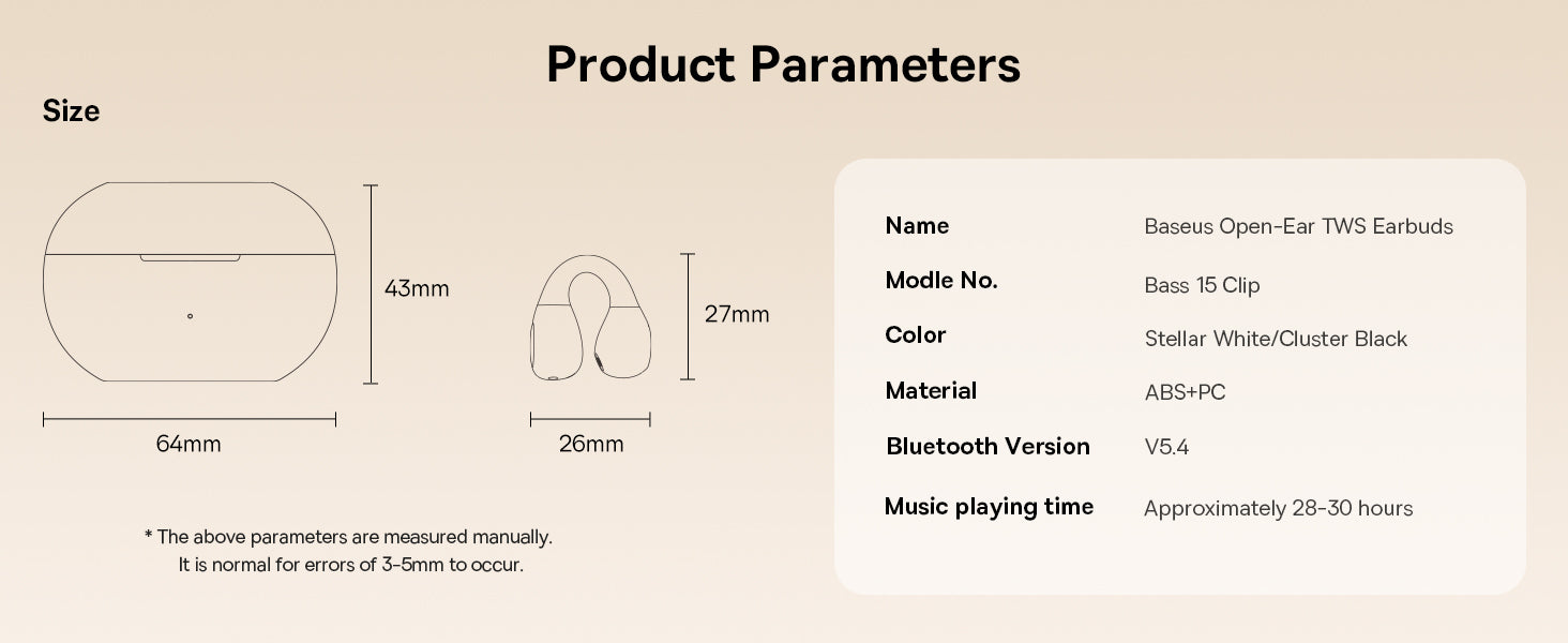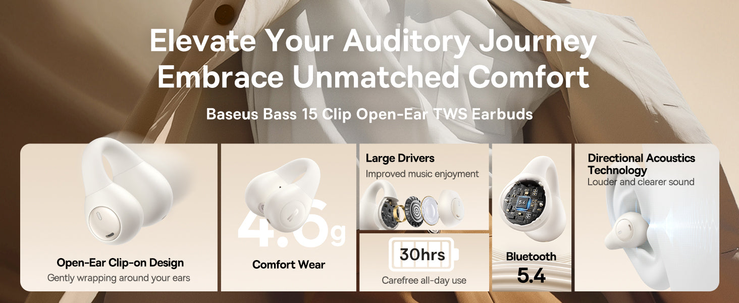 Bluetooth sluchátka Baseus Bass 15 Clip Open Ear bílá