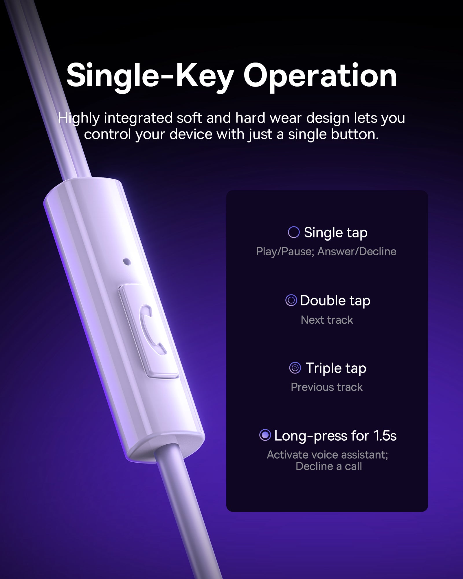 Pouzdro z hliníkové slitiny zvyšuje vizuální dojem a účast k živějšímu zvuku. Tvar do uší netlačí a pohodlně drží i při dlouhodobém poslechu. Na kabelu je tlačítko pro základní ovládání a je k dispozici hlasový asistent. Délka kabelu 1,10m. Nejsou určeny pro sport, nemají ANC ani True wireless ani odnímatelný kabel.