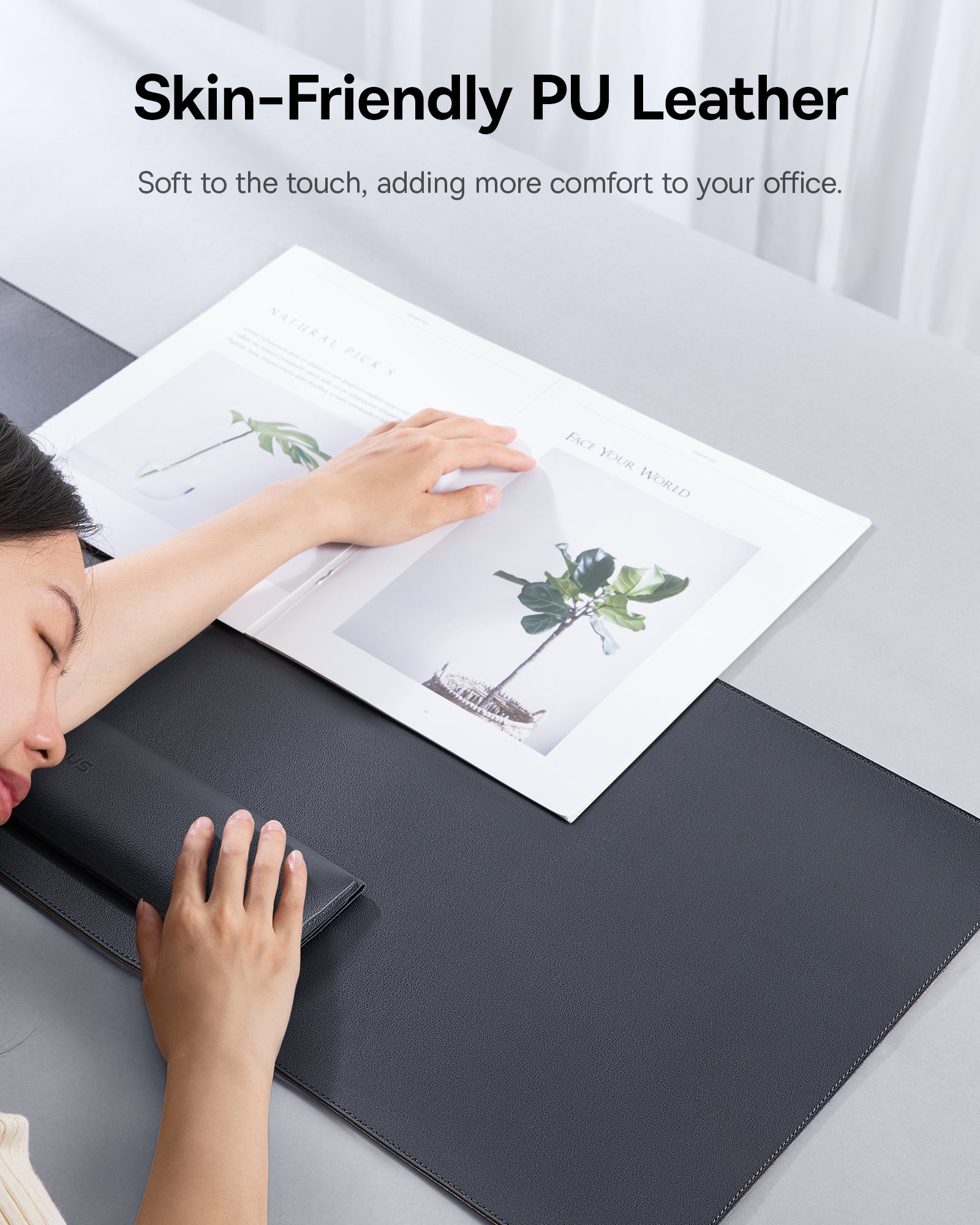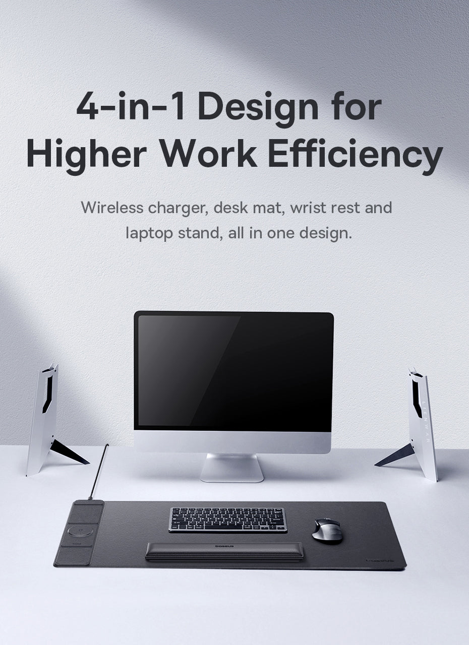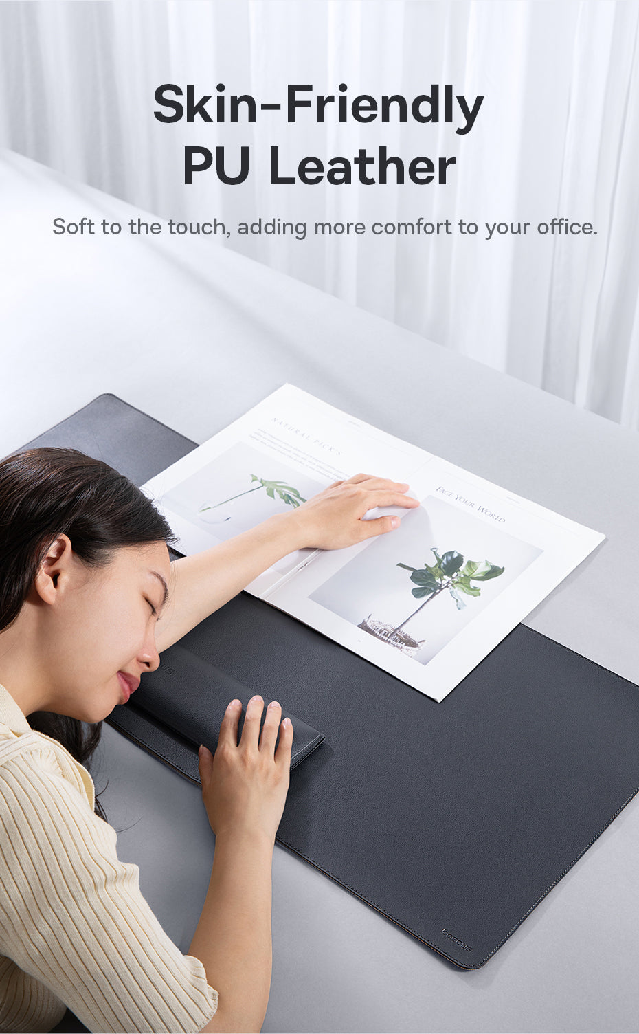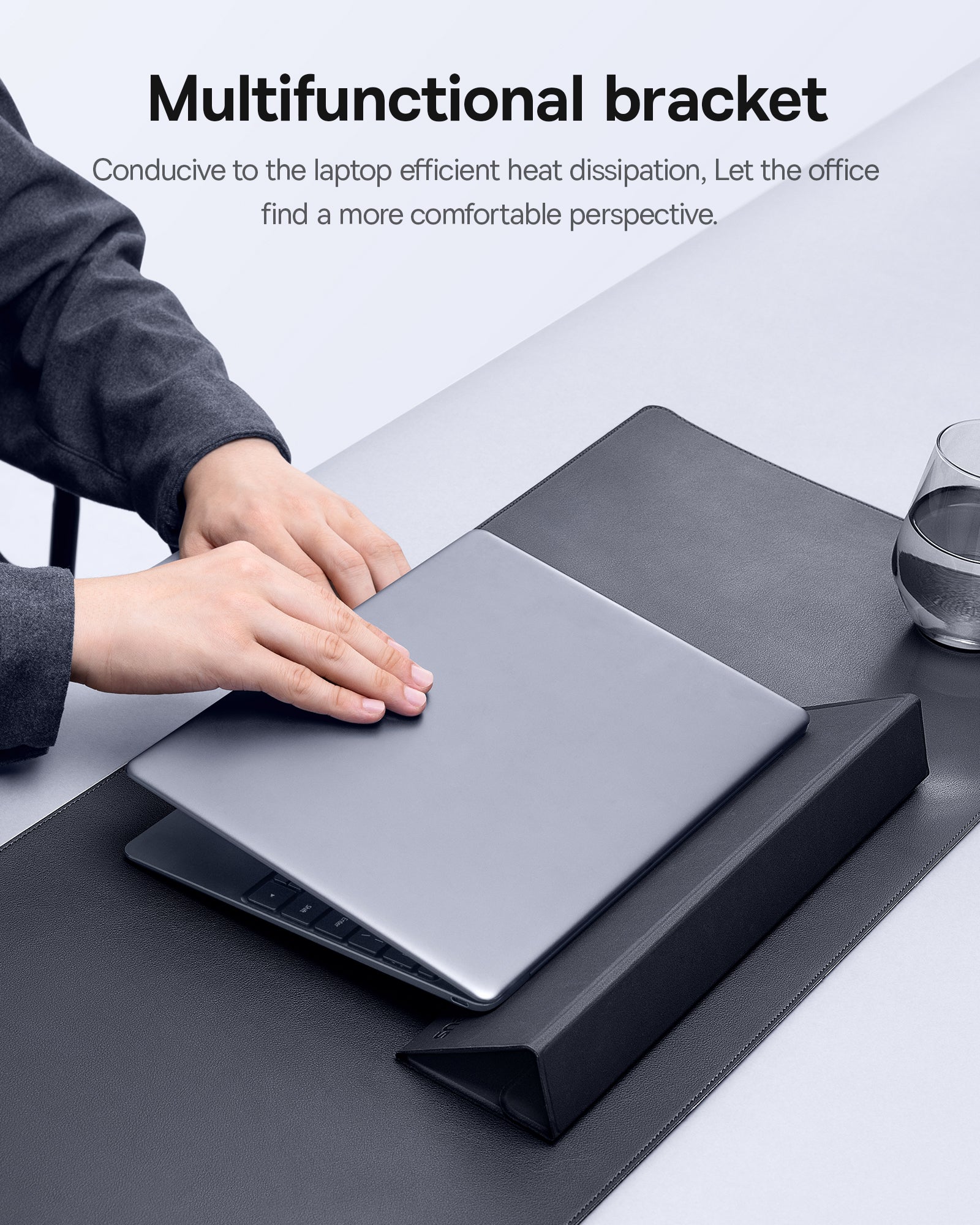 Baseus MagPro Series II je stolní podložka, která kombinuje podložku, opěrku zápěstí a stojan na notebook do jednoho. Černý elegantní vzhled dodává pracovnímu stolu profesionálu. Je z PU eko vyrobena, je voděodolná a odolná vůči mastnotě, čímž se snadněji udržuje.