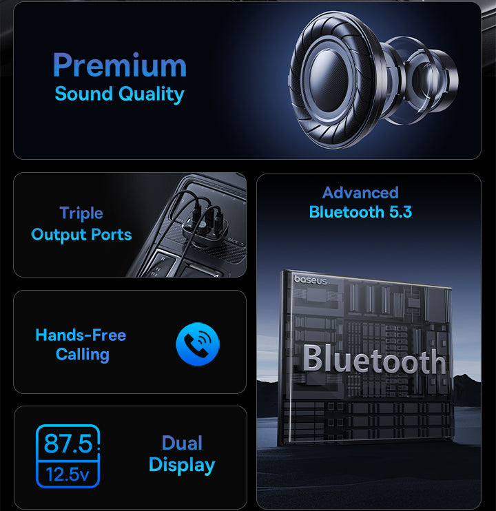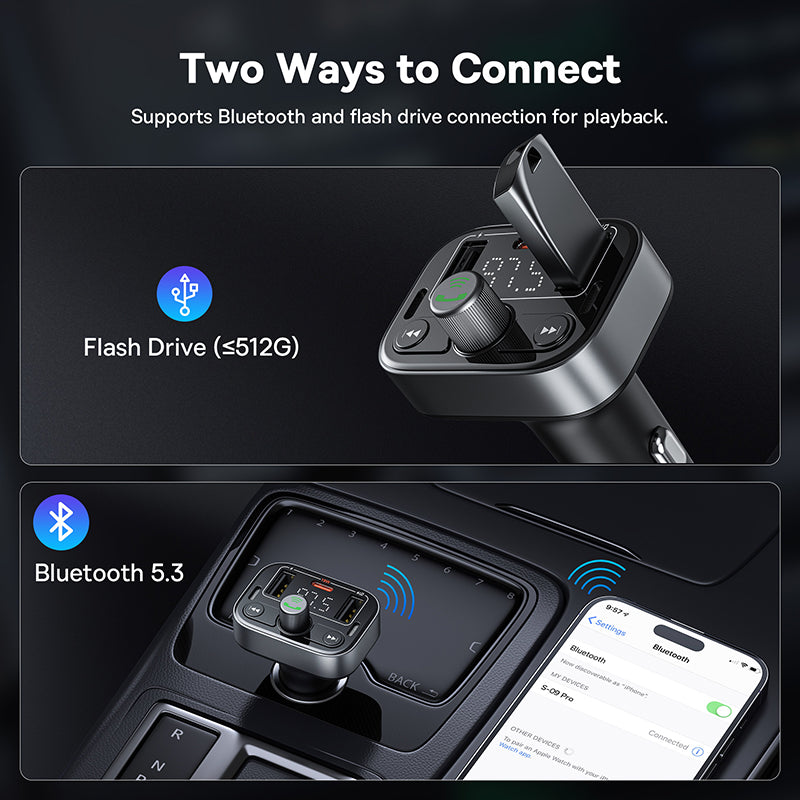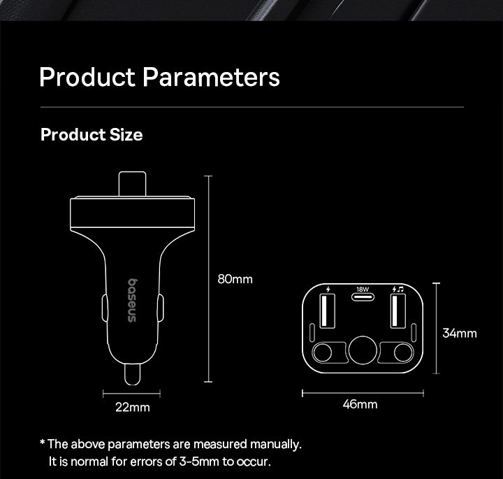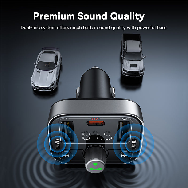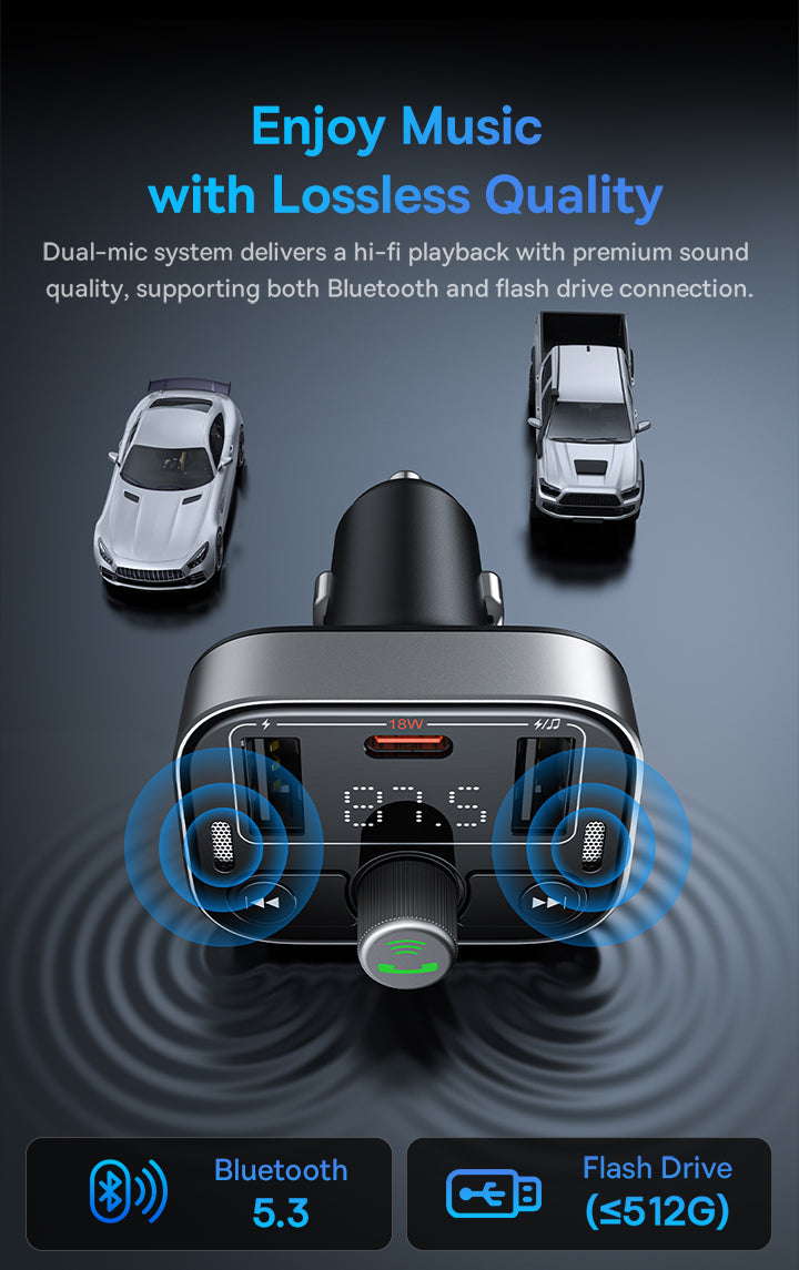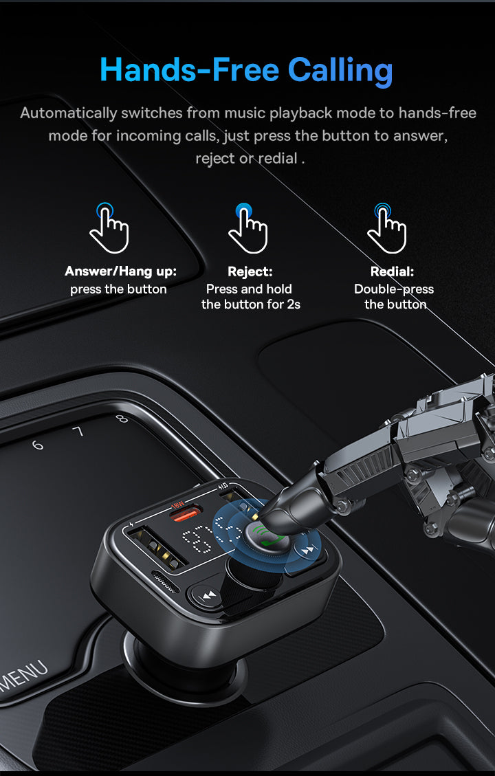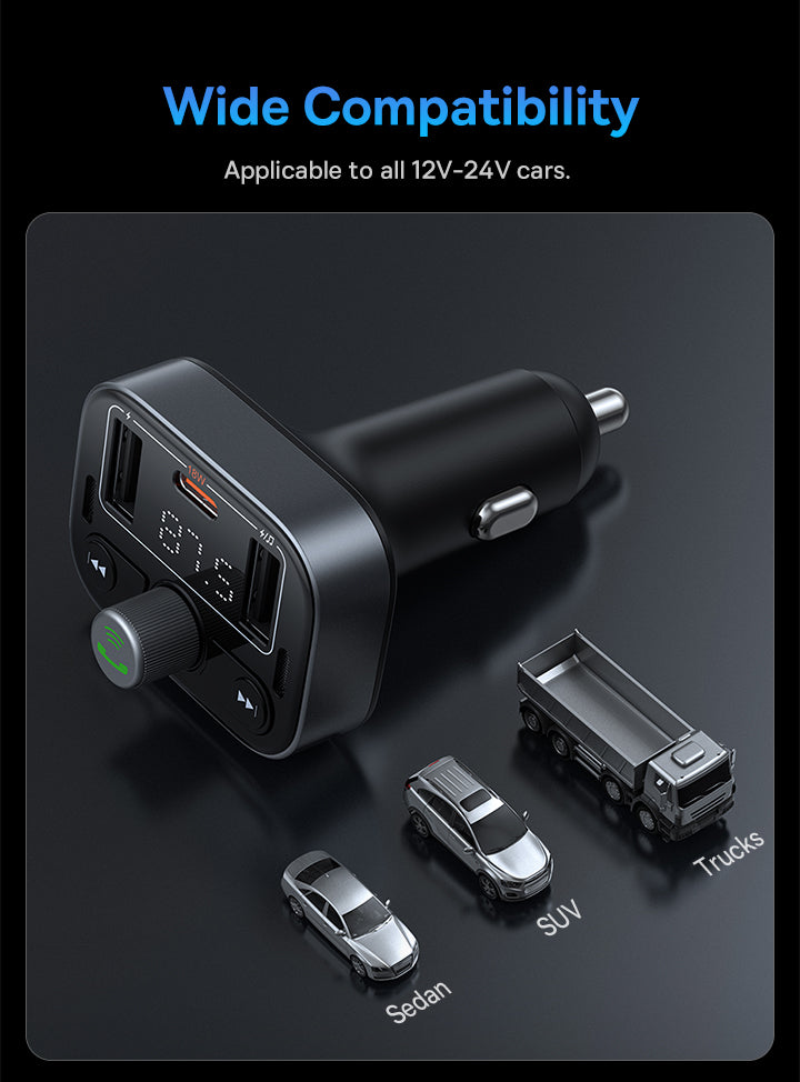 Vylepšete si zážitek z jízdy díky FM vysílači Baseus. Zařízení využívá Bluetooth 5.3 pro bezproblémové streamování hudby z telefonu do autorádia. Frekvenční rozsah FM 87,5–108 MHz umožňuje snadno najít volnou frekvenci pro čistý zvuk. Podporuje přehrávání z USB flash disku a TF karty (do 128 GB ) a má PD USB-C port s výkonem 18 W pro rychlé nabíjení. LED displej zobrazuje vybranou frekvenci a stav baterie a handsfree zajištění bezpečné komunikace. Duální připojení: Bluetooth a USB flash disk. Přístroj je vybaven bezpečnostními ochranami včetně nadproudové a přepěťové ochrany. Kompaktní a jednoduché ovládání umožňuje rychlou změnu frekvence a pohodlné volání.