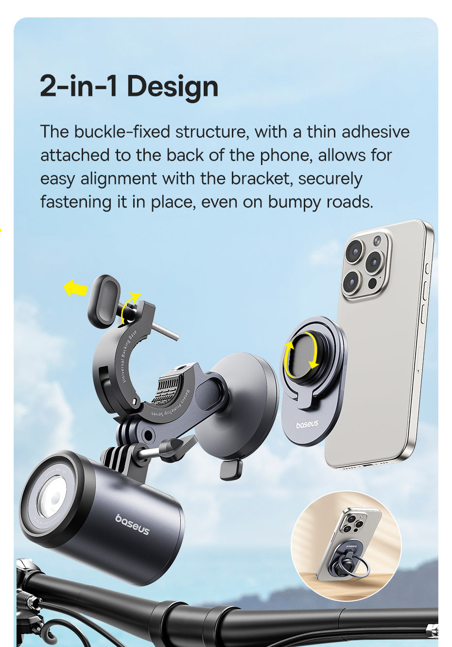 Držák na kolo Baseus PrimeTrip 2v1 s LED světlem
