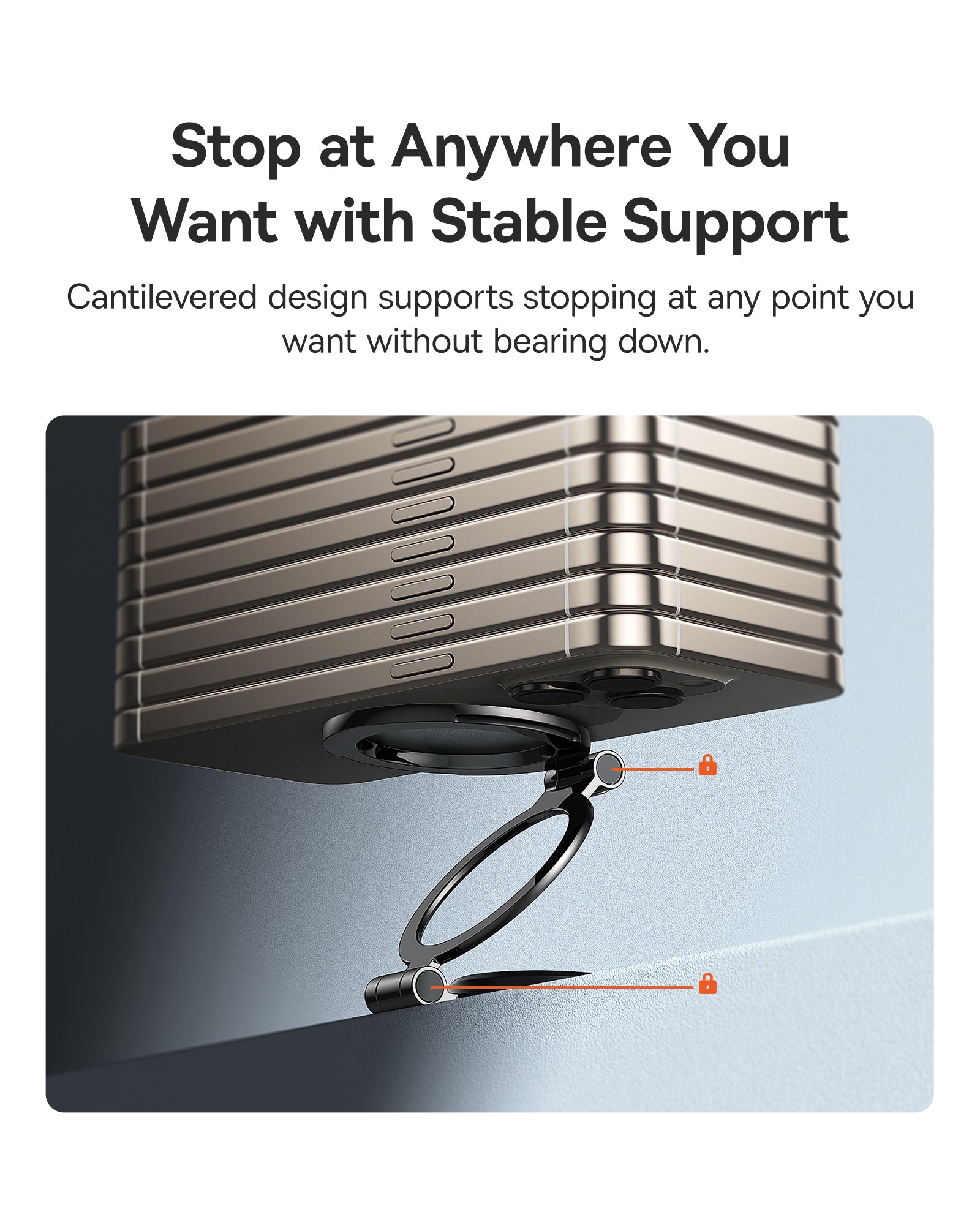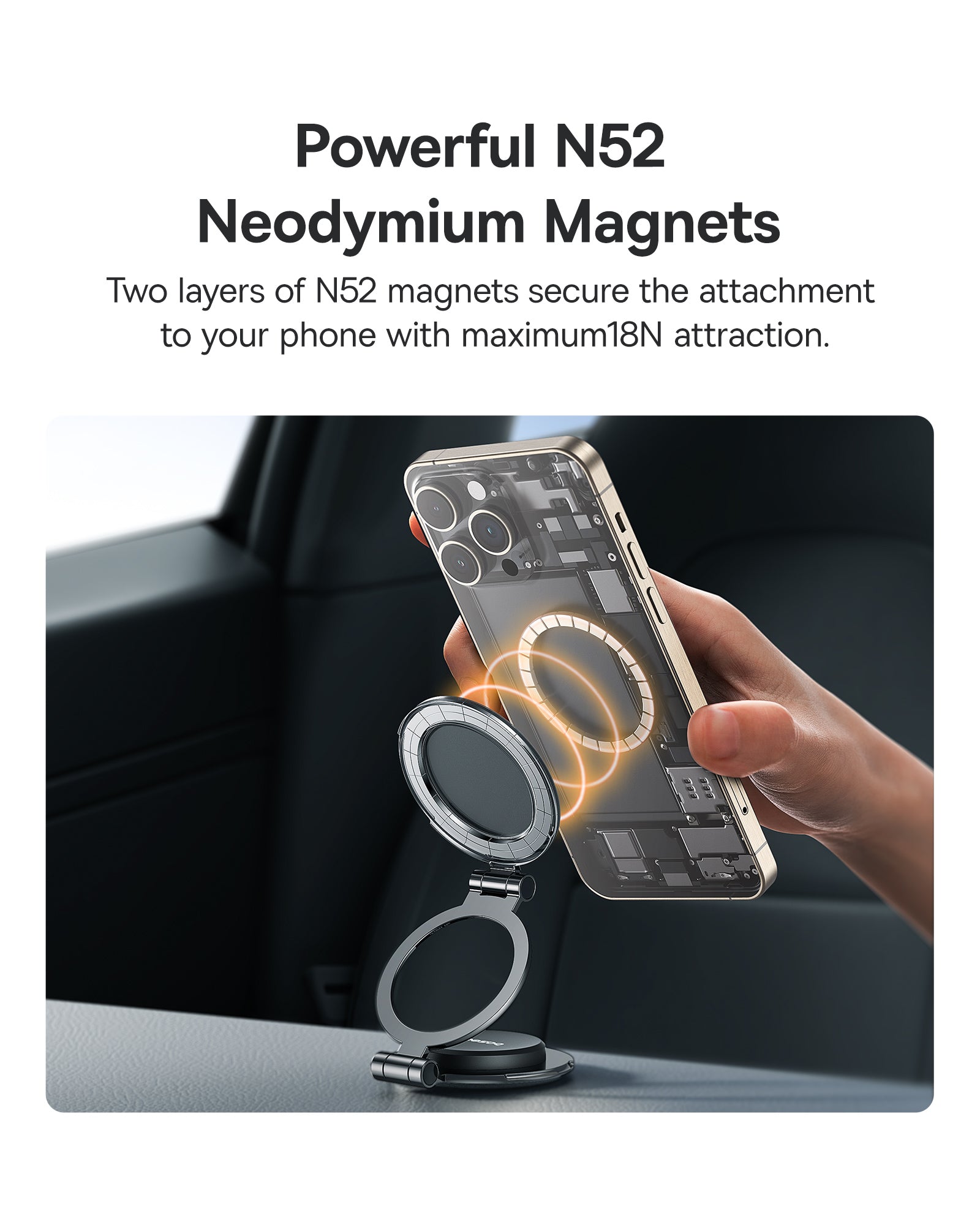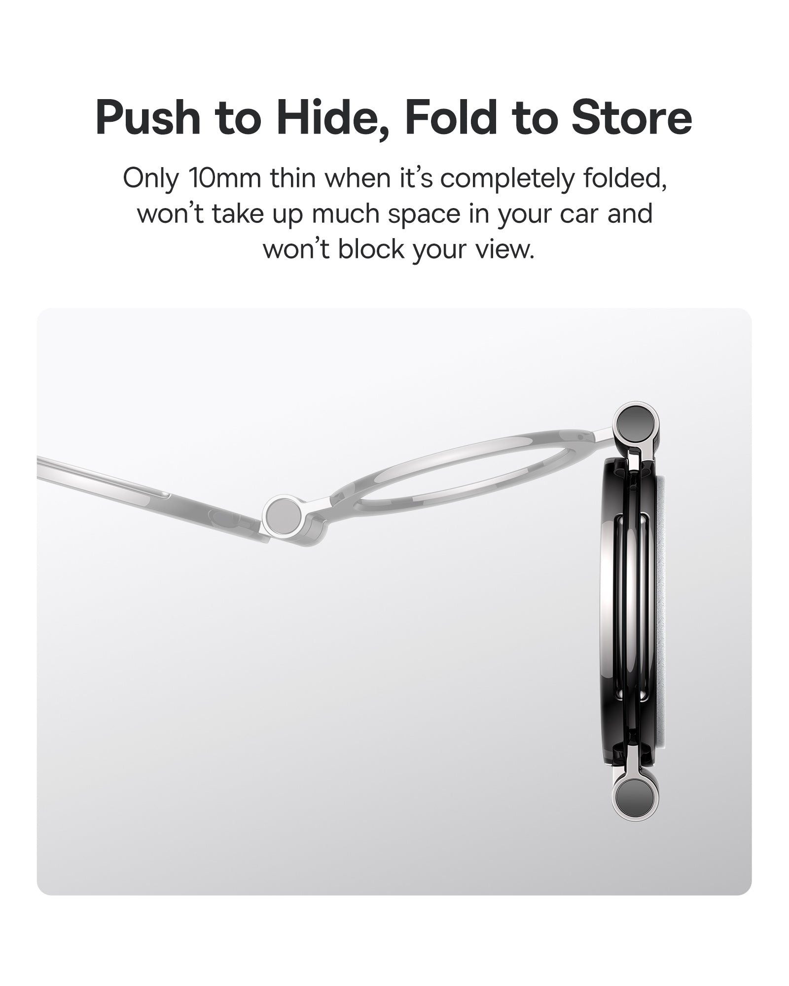 Držák se bez nářadí připevní na palubní desku nebo jiný rovný povrch a zanechá jen malou stopu. Díky 360° ovladače si lze nastavit ideální pozorovací úhel. Konstrukce je kompaktní a skládací, takže zabere málo místa a nepřekáže.