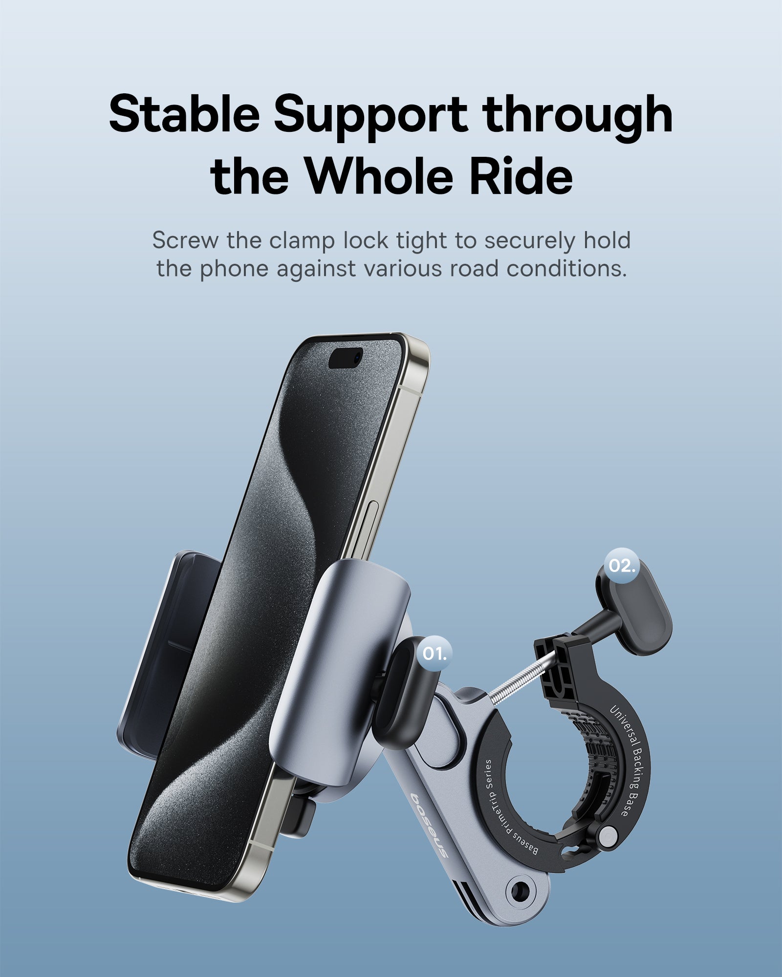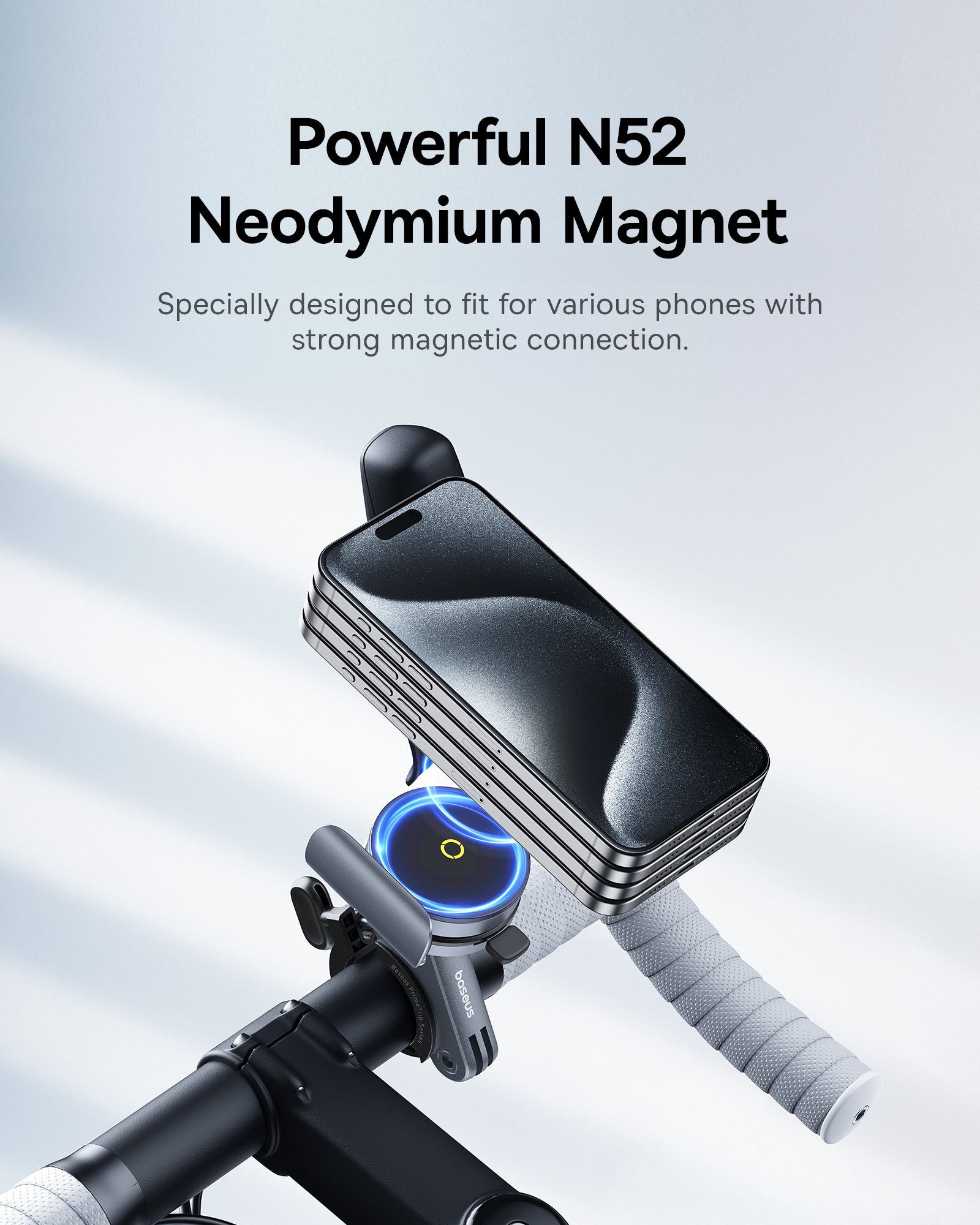 Magnet N52 a dvojitý šroubový zámek zajistí stabilitu telefonu i při jízdě po nerovném terénu. Konstrukce neblokuje fotoaparát, takže můžete během jízdy pořizovat snímky. Držák je vyroben ze slitiny zinku, ABS a PC plastu , což zvyšuje odolnost proti poškození a povětrnostním vlivům. Černý minimalistický design ladí s potenciálem kolem či koloběžkou