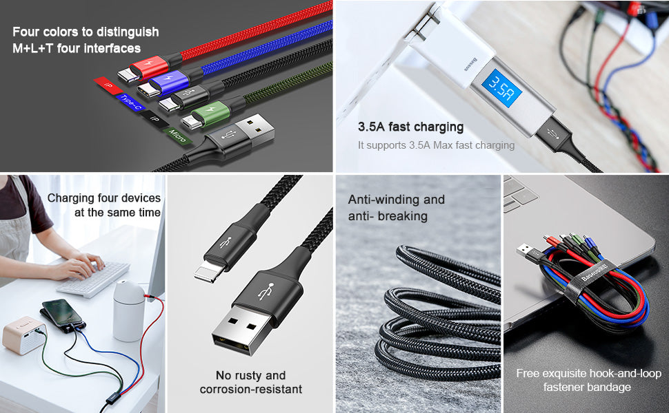 | Model | Rychlý kabel 4 v 1 pro Lightning + Type-C(2) + Micro 3,5A 1,2A |
