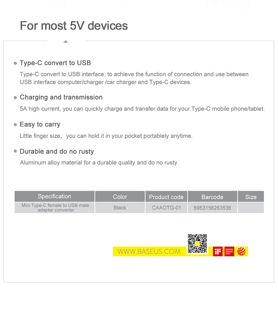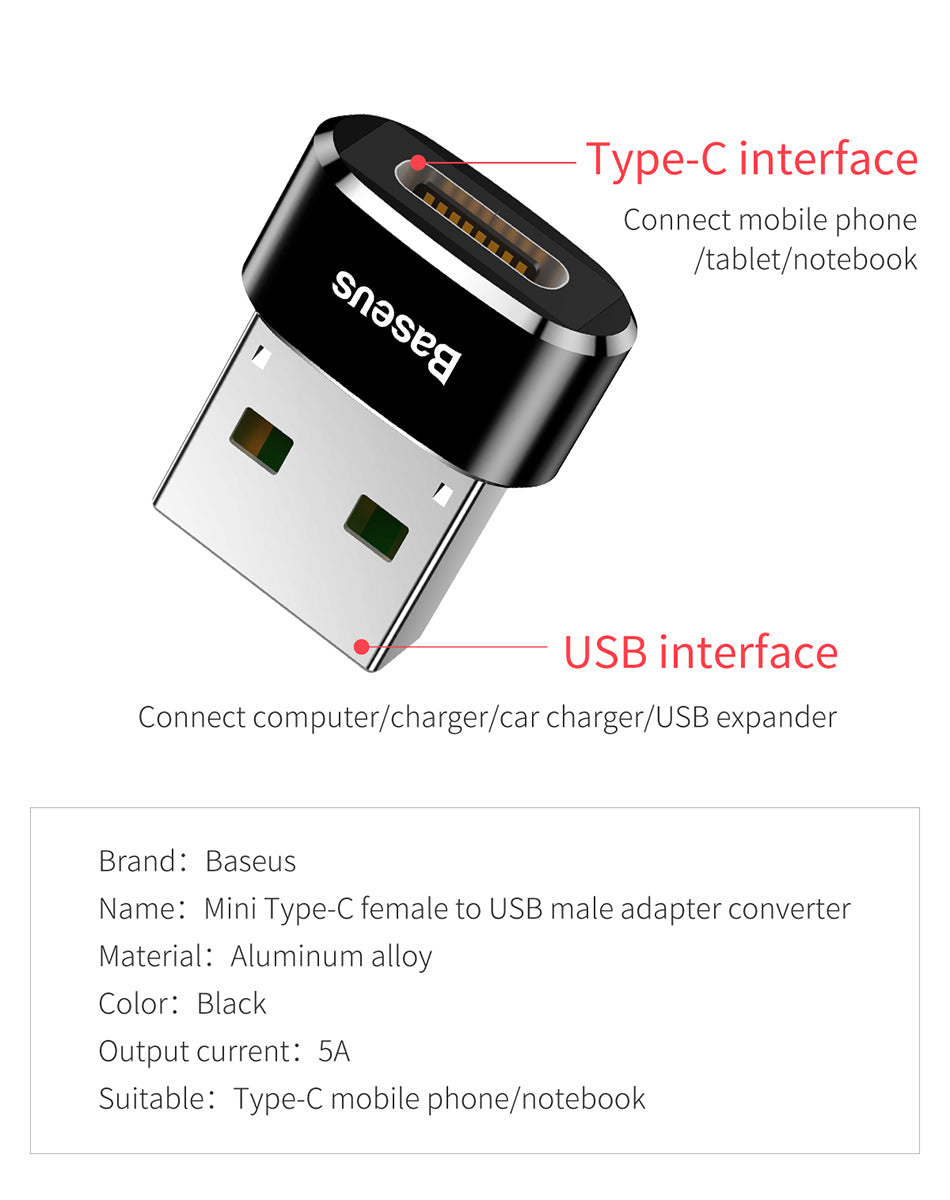 Adaptér Baseus Ingenuity Series Mini OTG USB 3.1/USB-C (M/F) černý