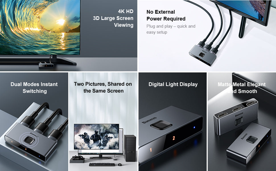 HDMI přepínač Baseus Matrix 2v1/1v2 šedý