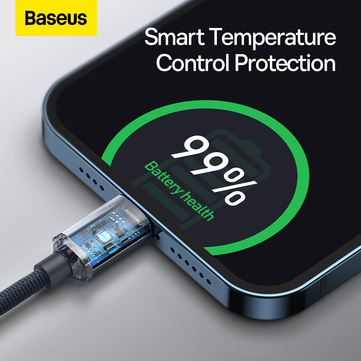 Kabel Baseus podporuje rychlonabíjení a rychlý přenos energie i dat. Díky kvalitnímu opletení vydrží náročné používání av namáhaných místech nedochází k poškození. Délka 200 cm poskytuje pohodlnou manipulaci a flexibilitu při používání. USB-C konektor na jednom konci a Lightning na druhém nabíjet a synchronizovat kompatibilní zařízení (např. mobilní telefony a tablety). Maximální proud dosáhne 2,4 A. Barva je černá. Značka Baseus, kód výrobce CAJY000301. Záruka výrobce: 24 měsíců.