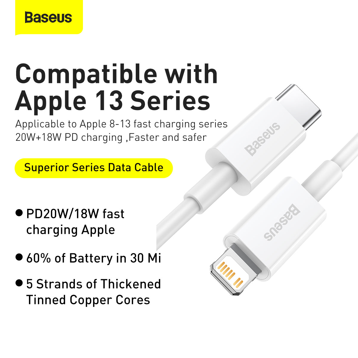 Kabel Baseus Superior USB-C/Lightning 1m 20W bílý