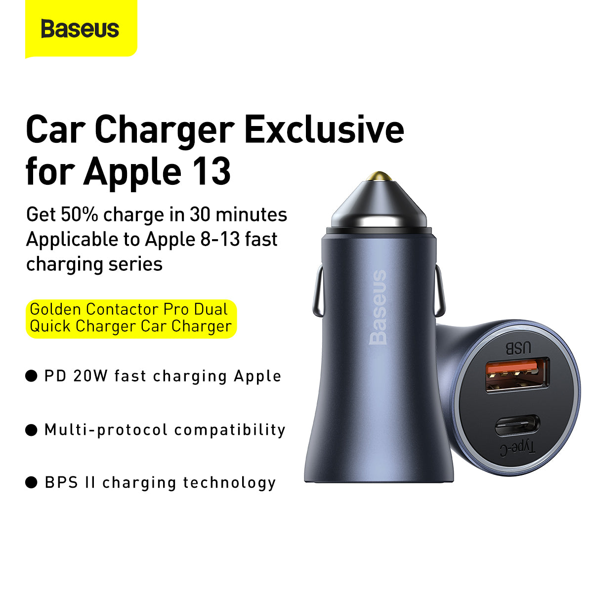Golden Contactor Pro je duální rychlonabíječka do auta s USB-A a USB-C, celkovým výstupem až 40 W. Podporuje rychlé nabíjení podle protokolů QC 3.0/4.0+, Power Delivery 3.0, Huawei SuperCharge a Samsung Adaptive Fast Charge, a dokáže nabíjet dvě zařízení současně bez ztráty výkonu. Je vyrobena z odolného materiálu z hliníku, PC a ABS, s plamenovou odolností. Kompaktní rozměry (55 × 26,5 mm) umožnit snadné umístění do zapalovače auta. Obsahuje LED podsvícení pro snadné použití po setmění a zesílenou protiskluzovou konstrukcí pro stabilitu na nerovném povrchu. Vstup je DC 12–24 V, což je kompatibilní s většinou vozů. Integrovaný inteligentní obvod identifikuje připojené zařízení a optimalizuje proud, aby bylo nabíjení bezpečné a efektivní. Certifikace CE, RoHS, FC potvrzují shodu s normami.