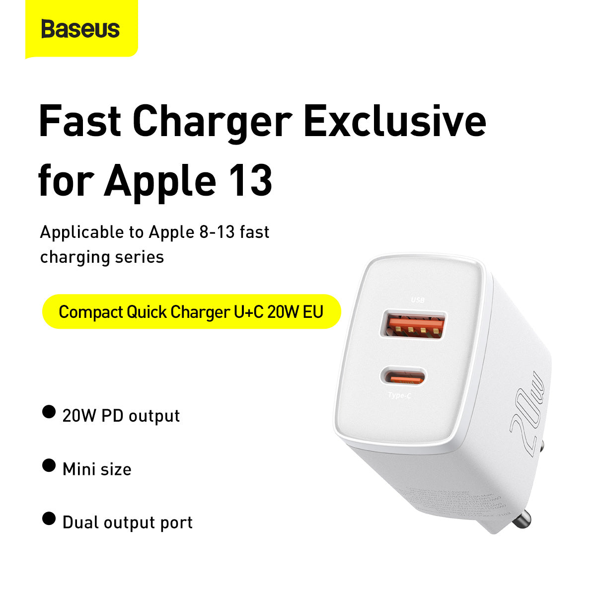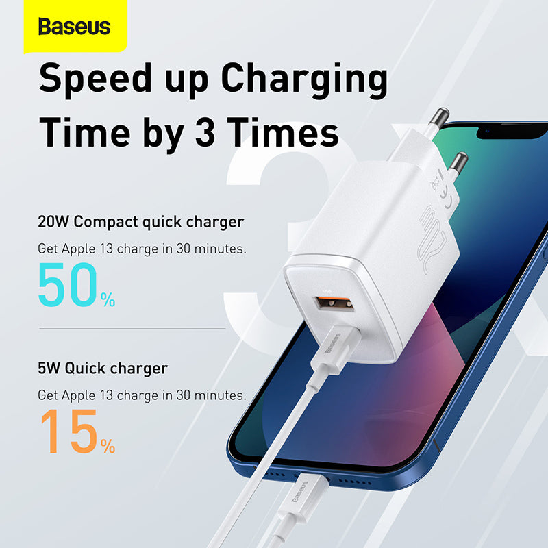 Nabíječka do sítě Baseus Compact 20W, 1xUSB, 1xUSB-C bílá