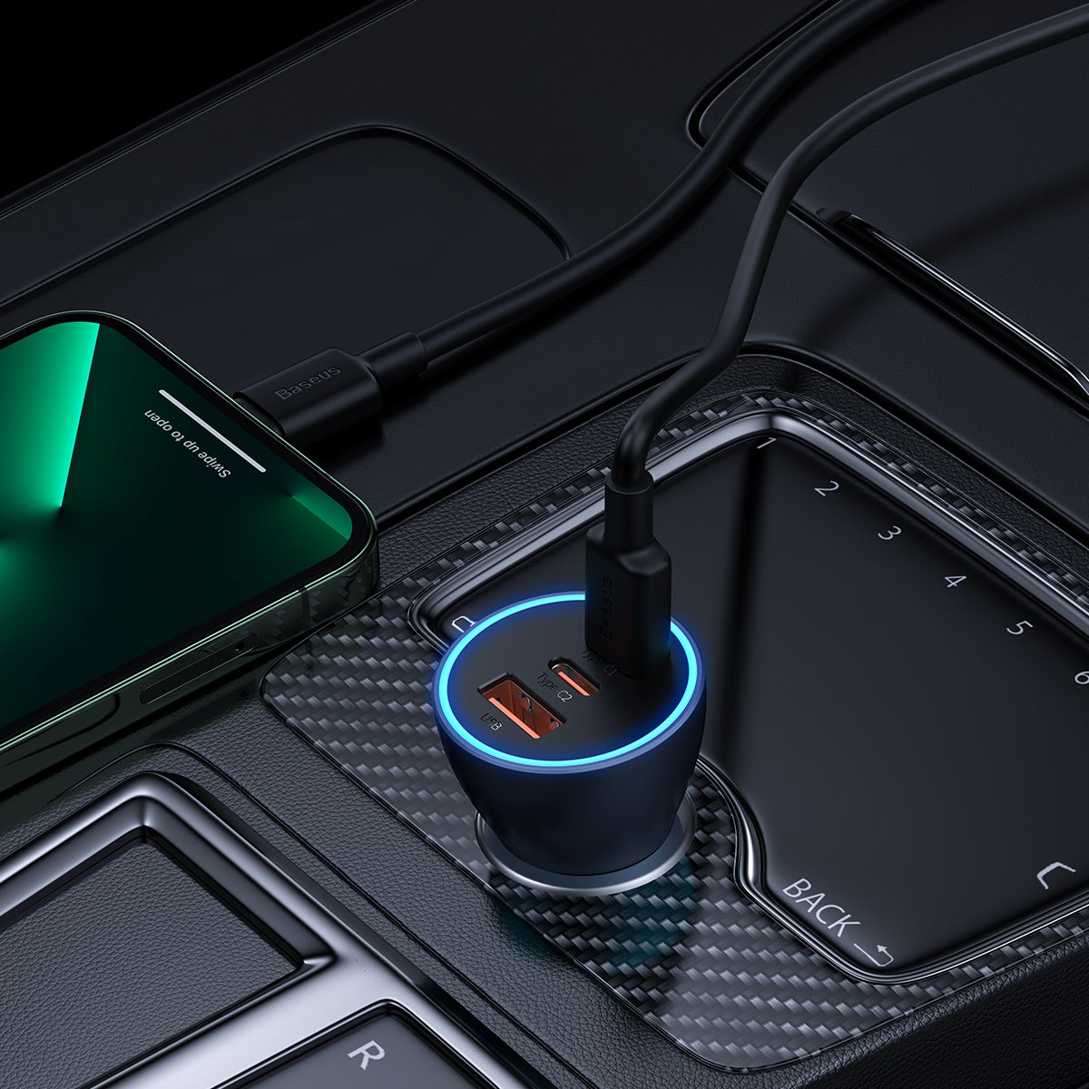 Nabíječka do auta Baseus Magic 65W 1x USB, 2x USB-C černá