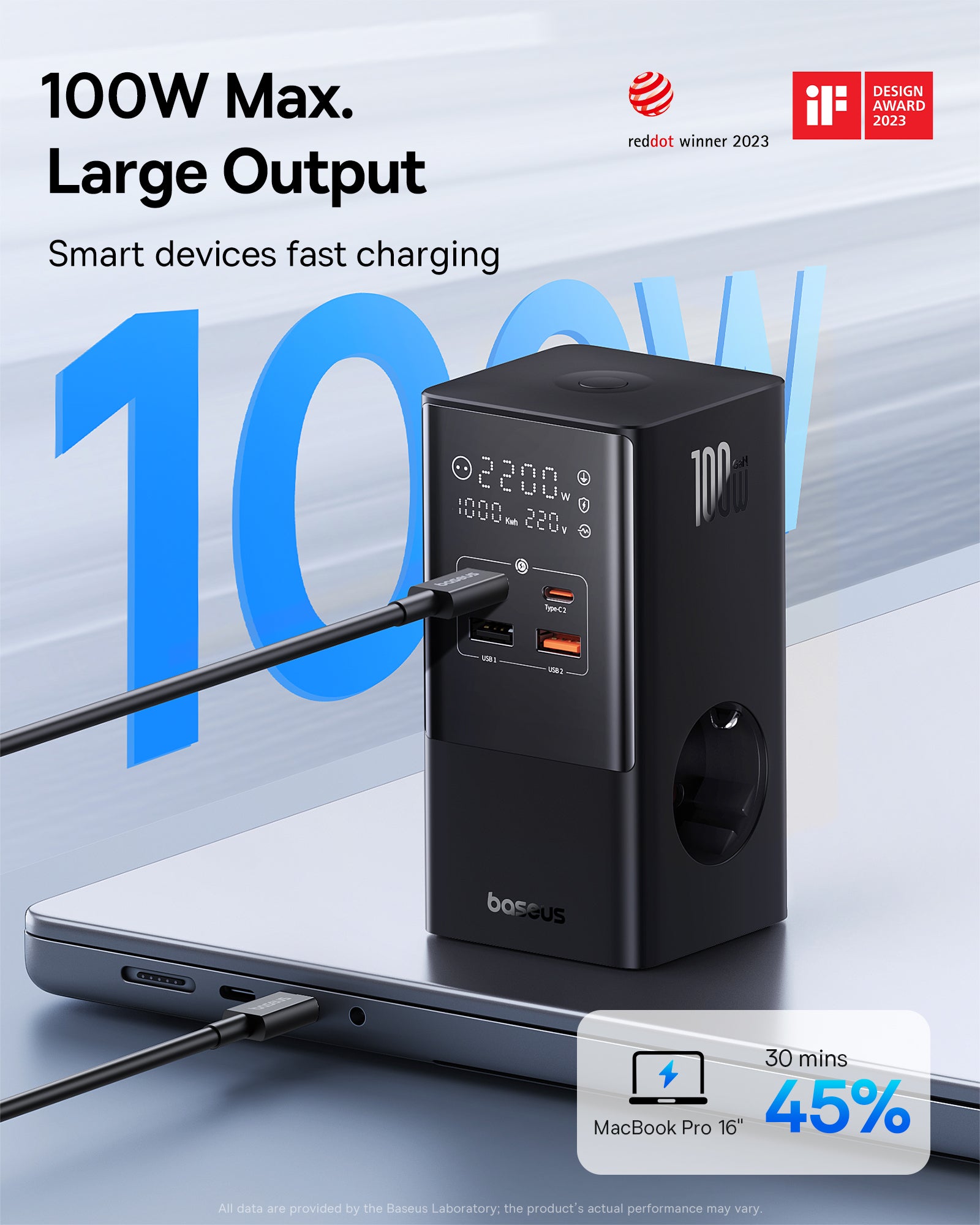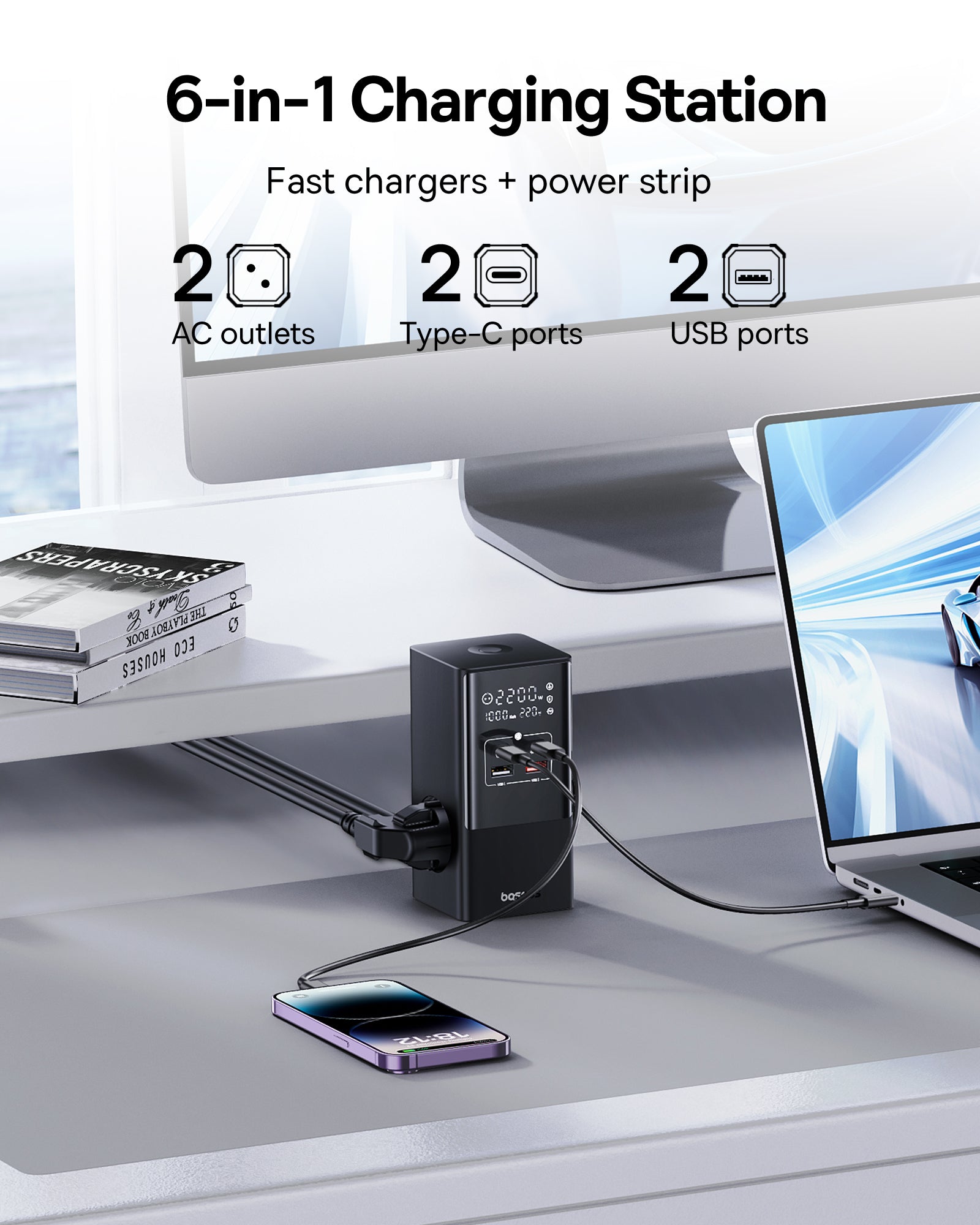 Nabíjecí stanice Baseus PowerCombo Tower 100W 2xzásuvka, 2xUSB, 2xUSB-C černá