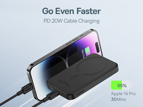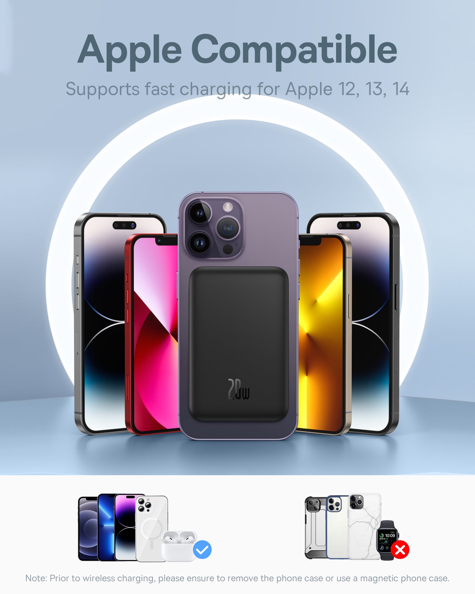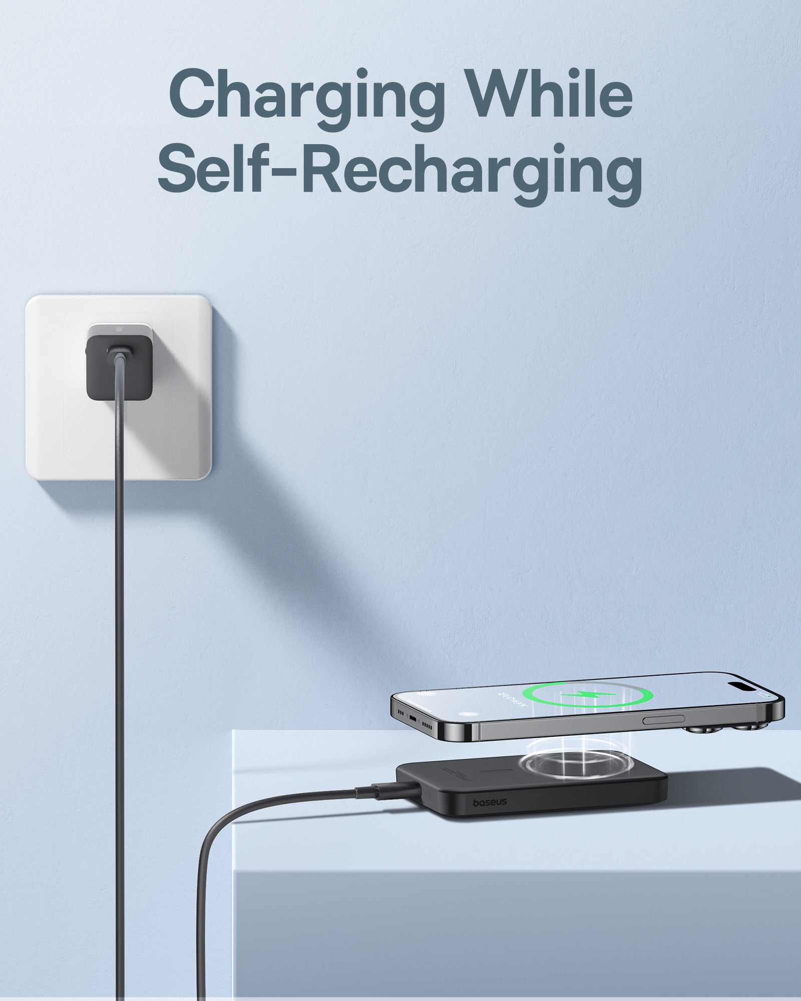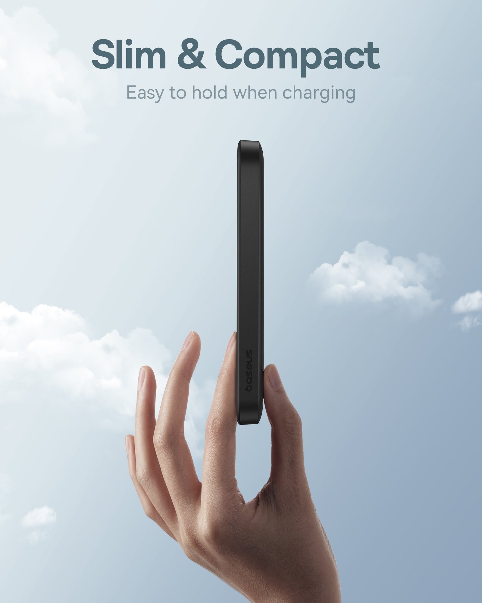Baseus magnetická mini powerbanka s kapacitou 5000 mAh nabízí pohodlné nabíjení na cestách. Díky magnetickému uchycení lze powerbanku bezpečně připevnit k telefonu a nabíjet bezdrátově během používání.