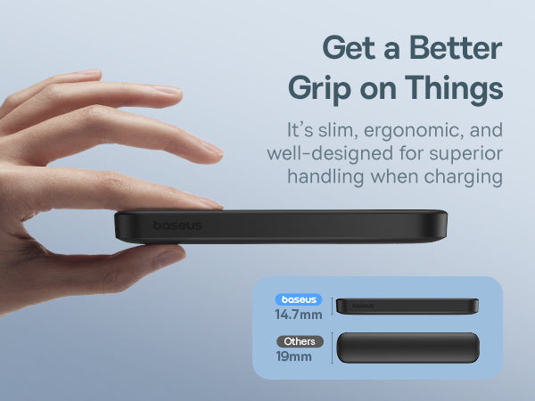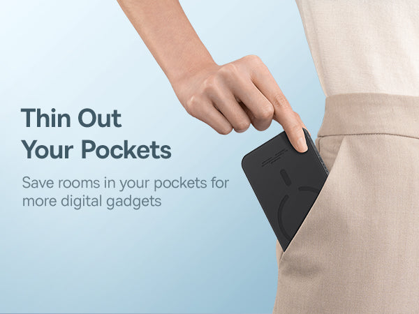 Je štíhlá a kompaktní – tloušťka 14,7 mm a rozměry 14,2 × 68,9 × 106,4 mm – a snadno se vejde do kapsy či kabelky, což je ideální společníkem pro každodenní i cestování. Poskytuje bezpečné nabíjení a ochranu zařízení.