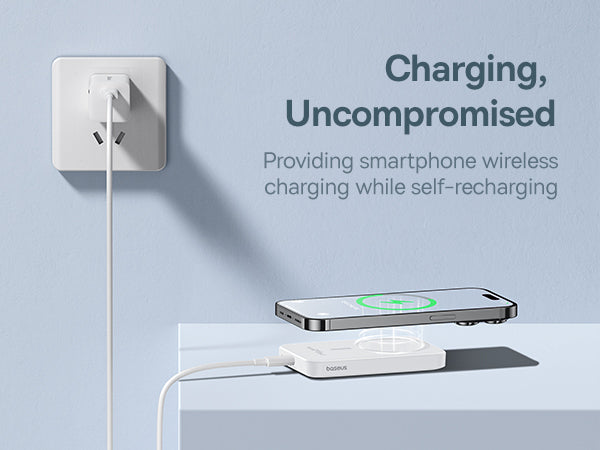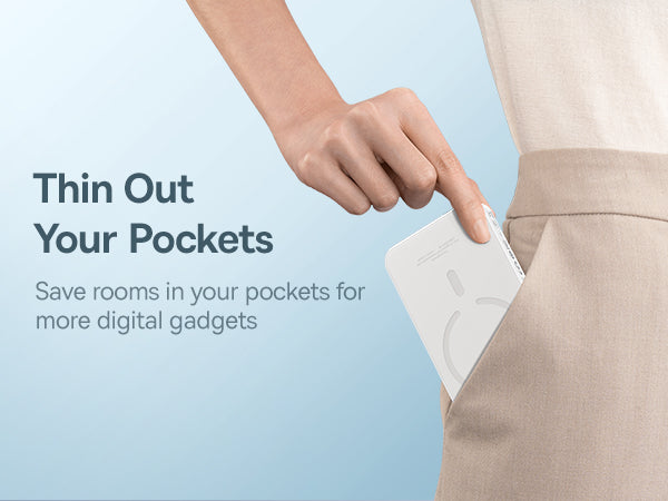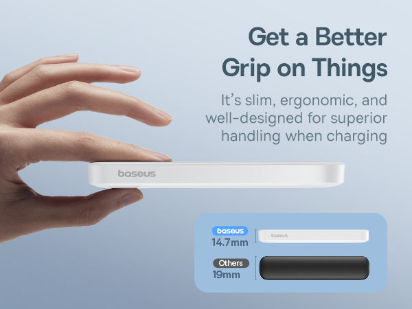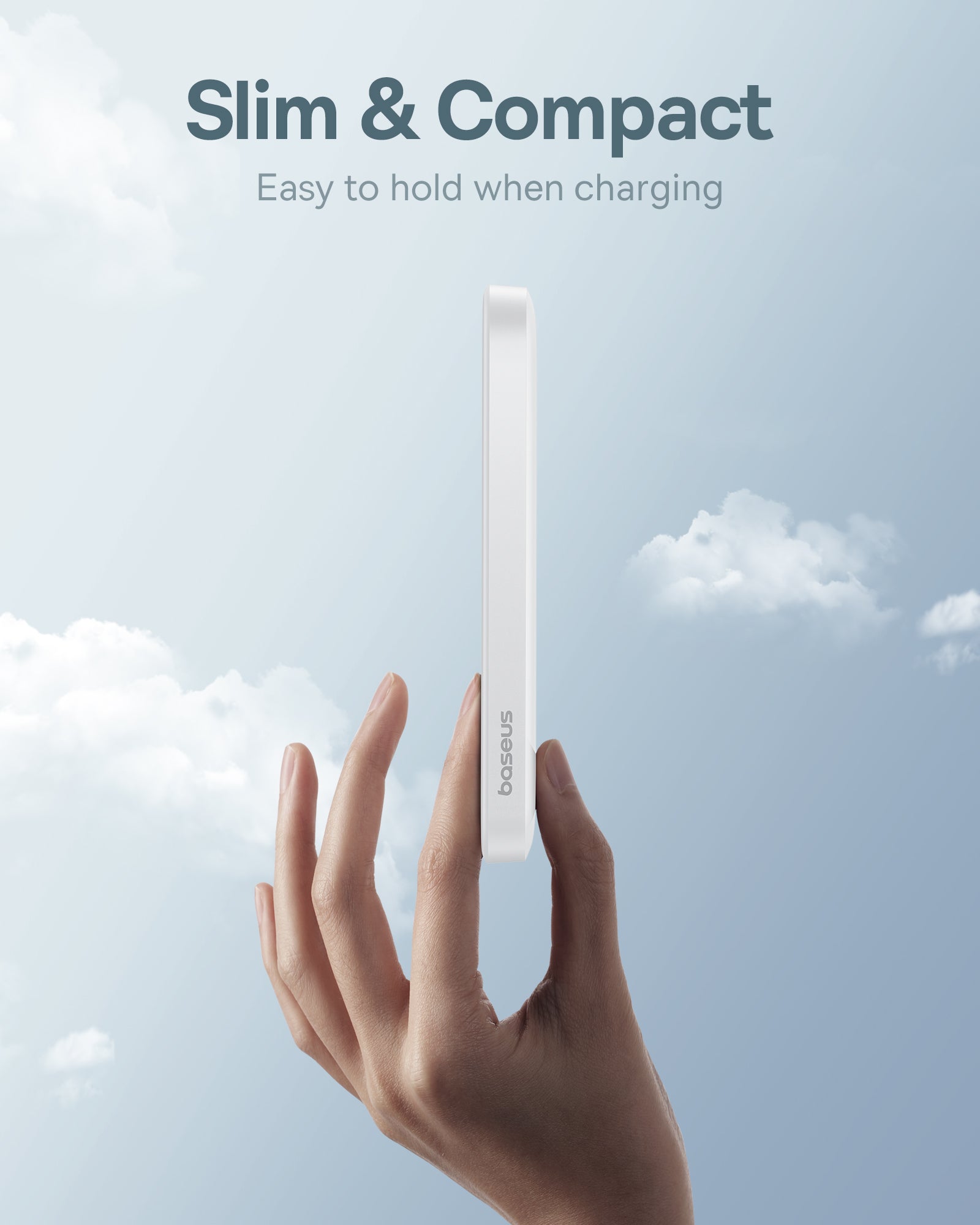 Díky kompaktním rozměrům 14,7 mm tenký design se pohodlně vejde do kapsy či kabelky a je ideální na cestování i pro každodenní použití. Zajišťuje bezpečné nabíjení a vyhoví nároky na rychlé nabíjení: USB-C výstup 5V=3A, 9V=2A; vstup 5V=2,4A, 9V=2,22A, 12V=1,5A; bezdrátové nabíjení 5/7,5/10/15 W. Rozměry 14,2 × 68,9 × 106,4 mm, barva bílá.