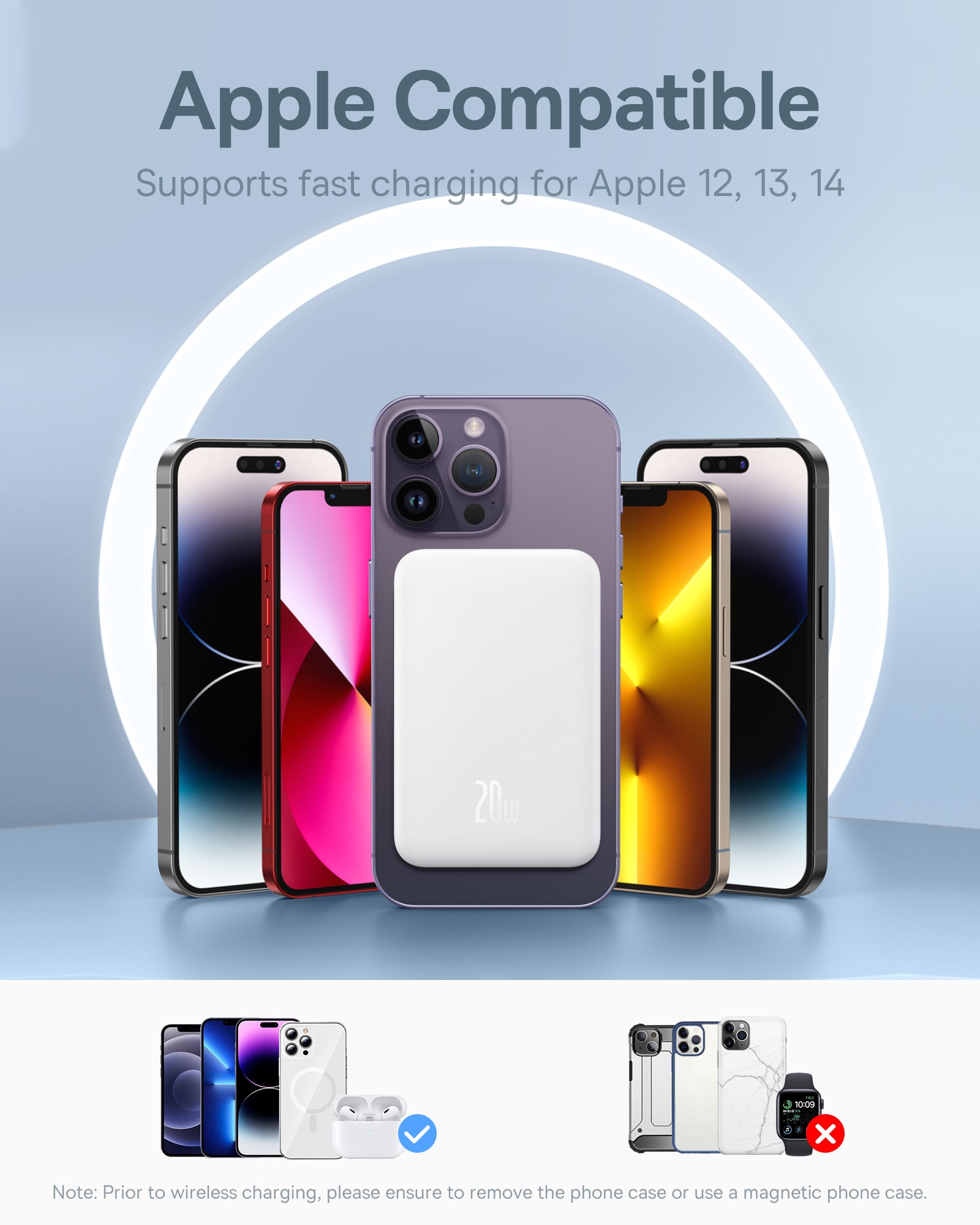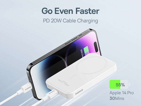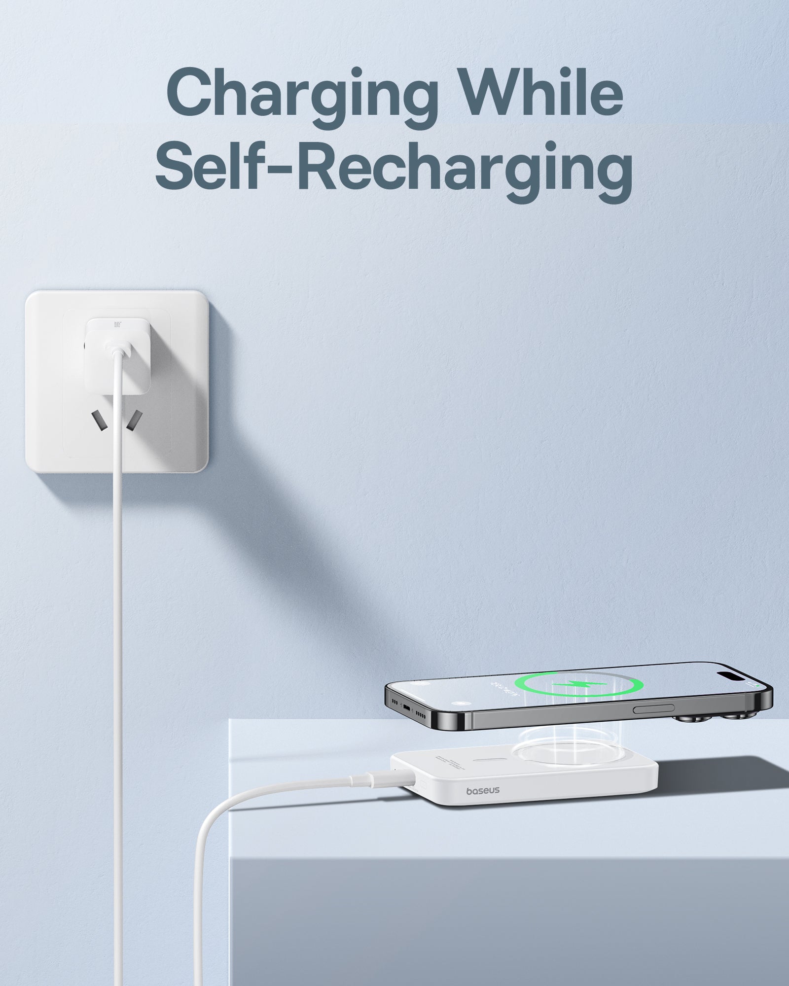 Baseus magnetická mini powerbanka s kapacitou 5000 mAh nabízí pohodlné nabíjení bez hledání zásuvek. Magnetické uchycení umožňuje pevně přilne k telefonu a bezdrátovému nabíjení během používání.
