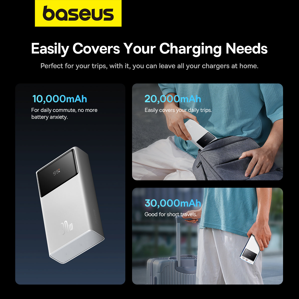 Powerbanka Baseus Star-Lord je spolehlivý zdroj energie s velkou kapacitou pro nabíjení na cestách. Díky kapacitě 30000 mAh umožňuje vícenásobné nabíjení chytrých telefonů, tabletů a dalších zařízení během cest, v práci i na výletech. Umožňuje současné nabíjení více zařízení díky více portům a rychlému nabíjení, kompatibilní s Huawei SPC/FCP, Apple PD, Xiaomi QC a dalšími standardy. Inteligentní design zajišťuje efektivní a bezpečné používání: automaticky upravuje výstupní proud, napětí a výkon podle připojeného zařízení a zobrazujem další zprávu. Ochranné mechanismy chrání proti nabíjení, nadměrnému vybíjení, napěťovým špičkám a nadproudovou ochranu. Konstrukce z PC + ABS působí stylově a odolně; rozměry 40 × 69 × 154,8 mm a hmotnost cca 658–659 g doplňují její praktický charakter. Skvělý doplněk pro každodenní použití.