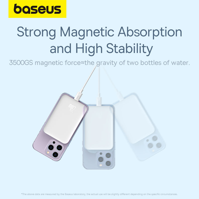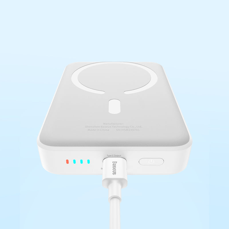 Baseus Mini Air Power Bank je kompaktní powerbanka s kapacitou 10 000 mAh. Nabízí kabelové i bezdrátové nabíjení až 15 W v balení je USB-C kabel pro doplnění energie až do 20 W u vybraných zařízení. Díky malým rozměrům a hmotnosti (109,1 × 70,4 × 18,5 mm, cca 203 g) ji lze pohodlně nosit na cesty, do práce i do letadla. LED indikátor zobrazuje stav nabití. Ochranné prvky chrání před přebíjením, přetížením, zkratem a nadproudem; Pokročilý NTC čip reguluje teplotu během nabíjení. Kompaktní design s vestavěnými magnety umožňuje stabilní a možné nabíjení vertikálně i horizontálně bez slunečního pouzdra.