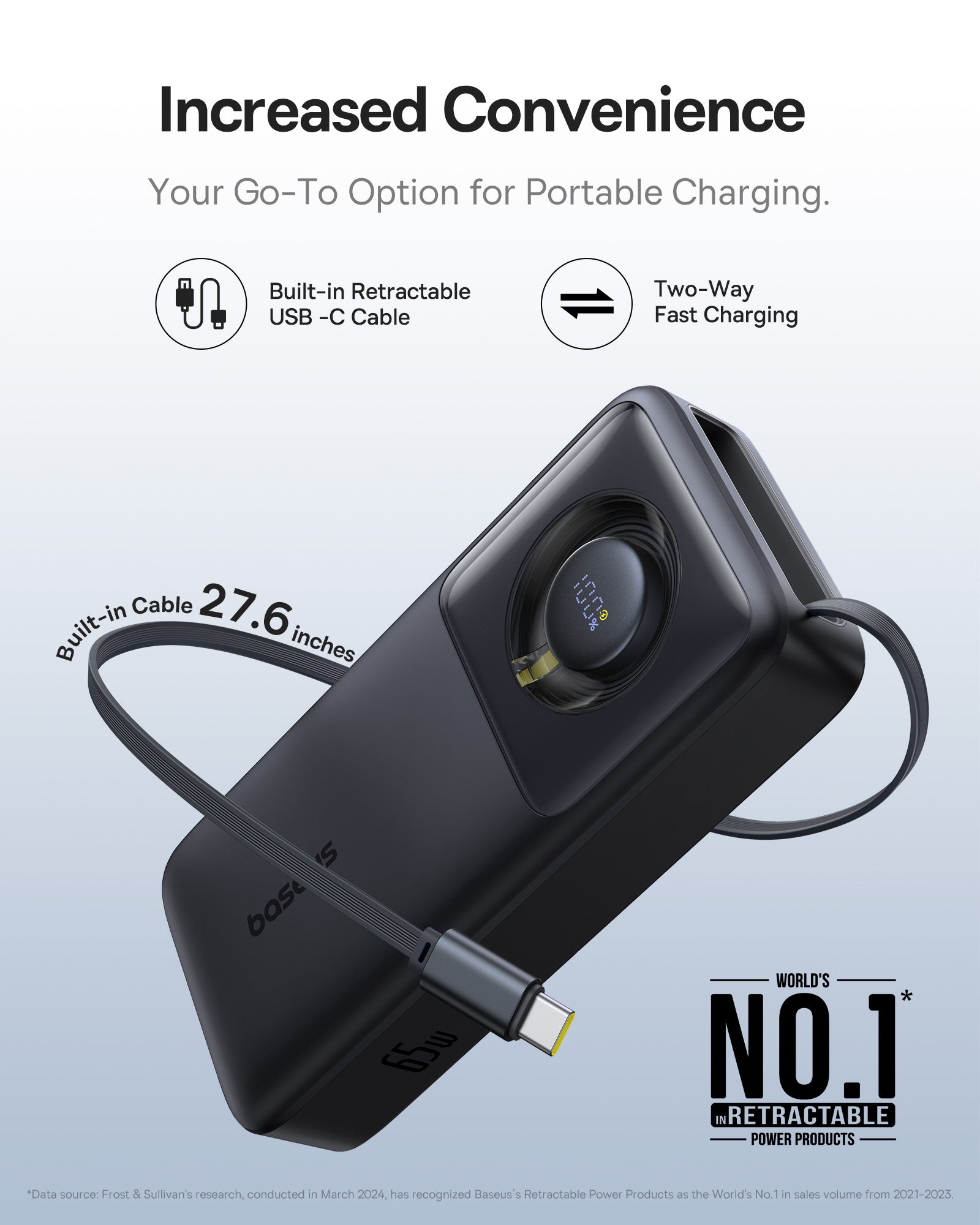Powerbanka Baseus Free2Pull 20000mAh, 65W, s kabelem USB-C černá