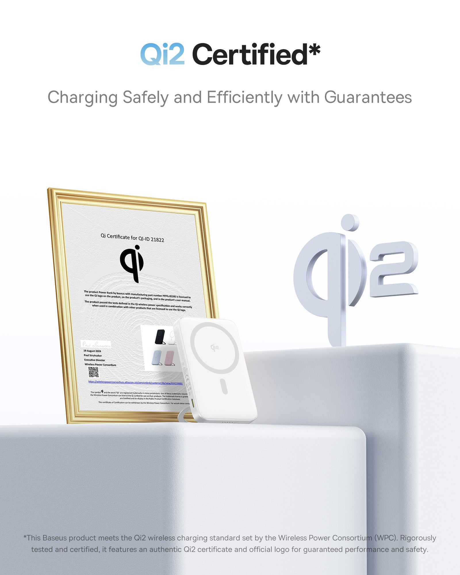 15W bezdrátové nabíjení s certifikací Qi2; až dvakrát rychlejší než tradičních 7,5W. Qi2 certifikace zajišťuje kompatibilitu s moderními zařízeními a lepší výrobou nabíjení. Umožňuje současné nabíjení dvou zařízení: iPhone bezdrátově a druhé zařízení přes USB-C. Kapacita 5000 mAh (3,6V/18Wh) poskytuje mobilní energii na cestách. Konstrukce s otočným stojanem nabízí hands-free sledování videí během nabíjení a nabídky telefonu. Konstrukce umožňuje proudění vzduchu pro efektivní chlazení a stabilní výkon i při delším nabíjení. Kompaktní a lehký design (cca 170 g) je vhodný na cestování. Nabíjecí výkon: bezdrátově 5W/7,5W/15W; USB-C výstup 5V/2,4A, 9V/2,22A, 12V/1,5A; USB-C vstup 5V/3A, 9V/2A; obecný výstup 5V/2,4A. Dovozce do EU: CPA CZECH sro