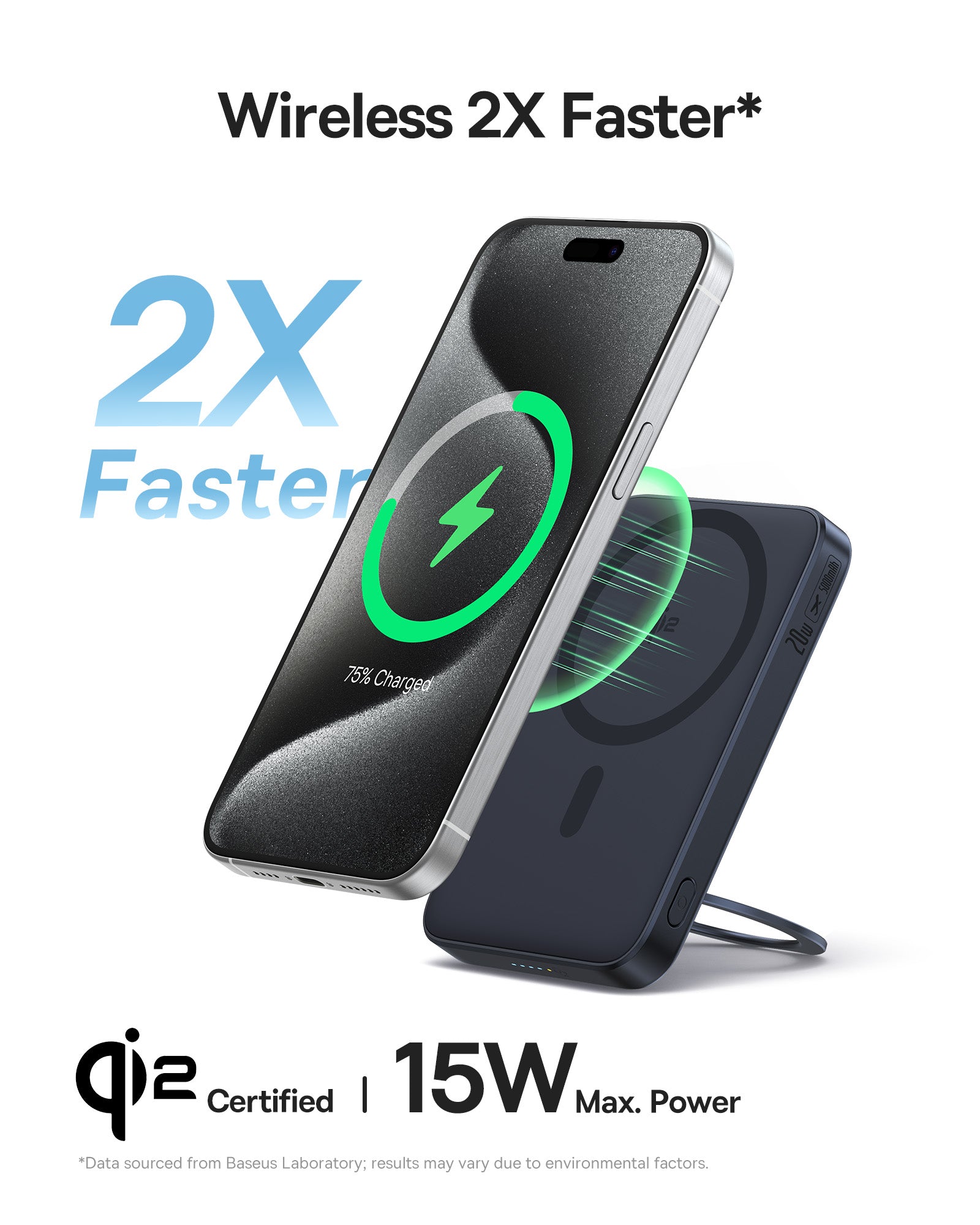 15W bezdrátové nabíjení s certifikací Qi2: dvakrát rychlejší než tradiční 7,5W a určené pro rychlé nabíjení iPhone.