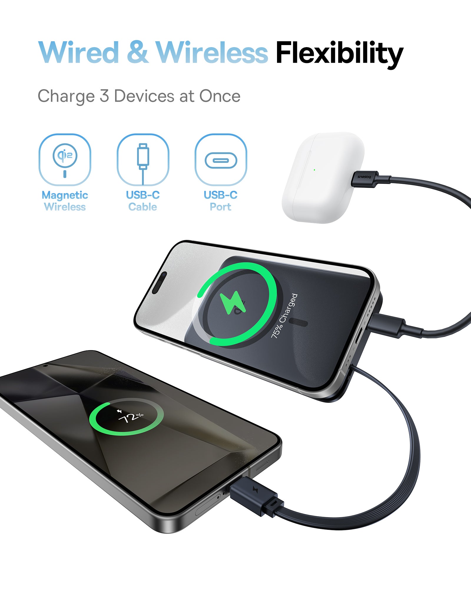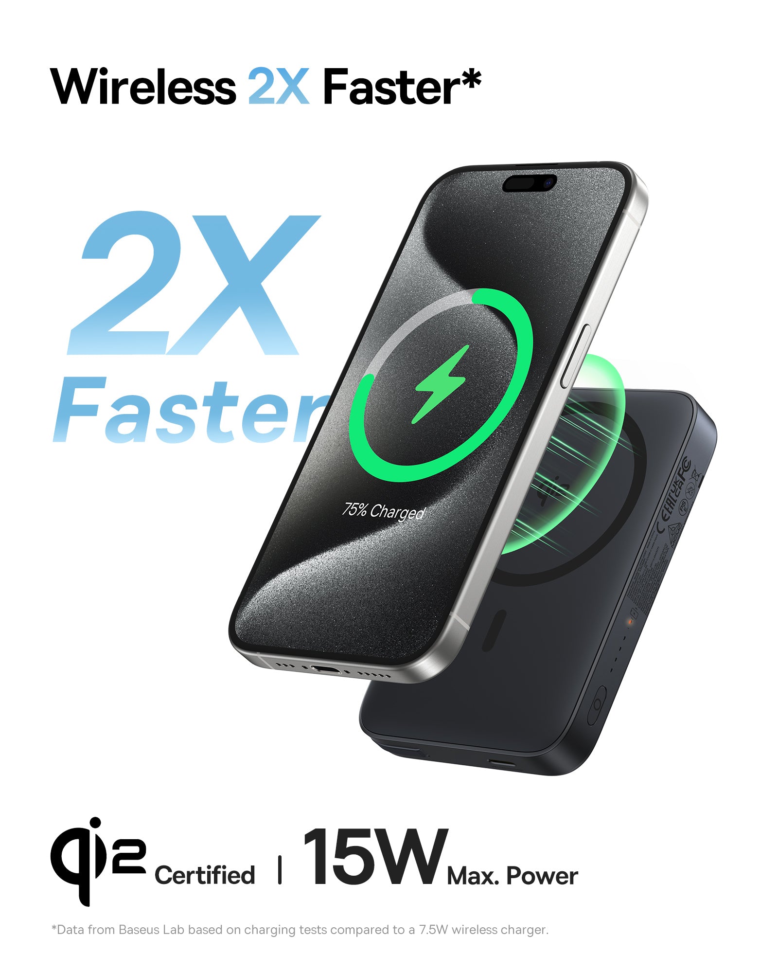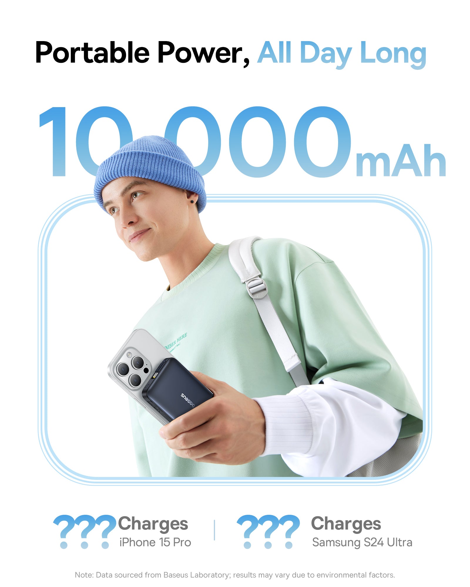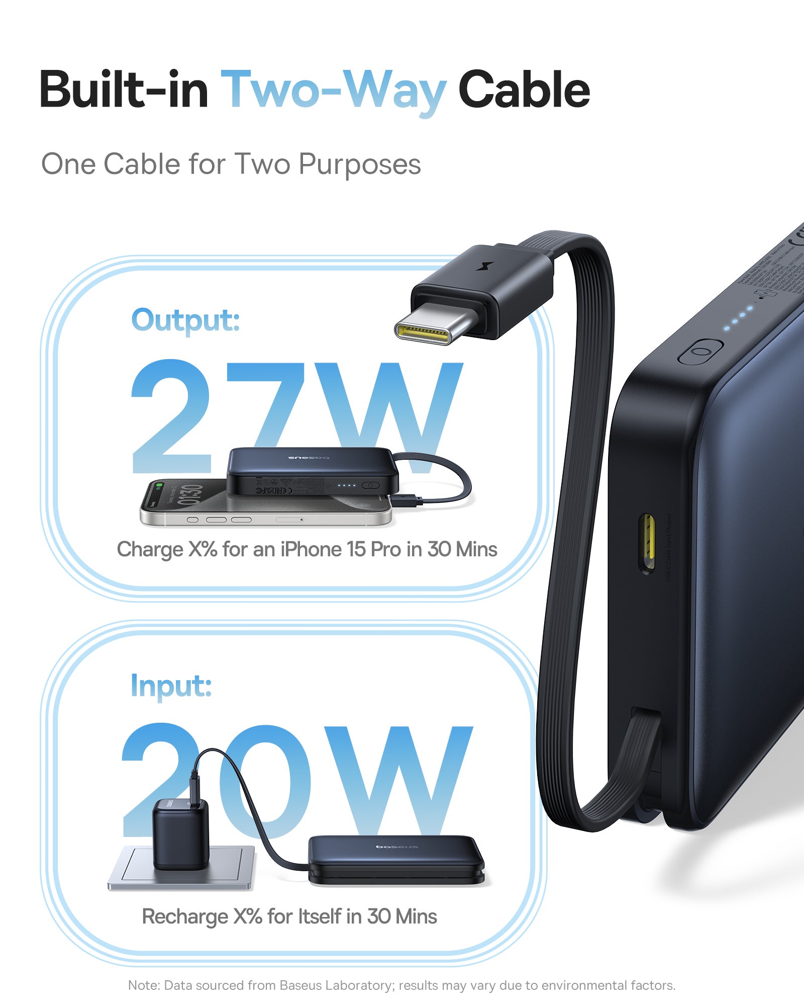 Powerbanka Baseus PicoGo Qi2 10000mAh, 27W, s kabelem USB-C černá