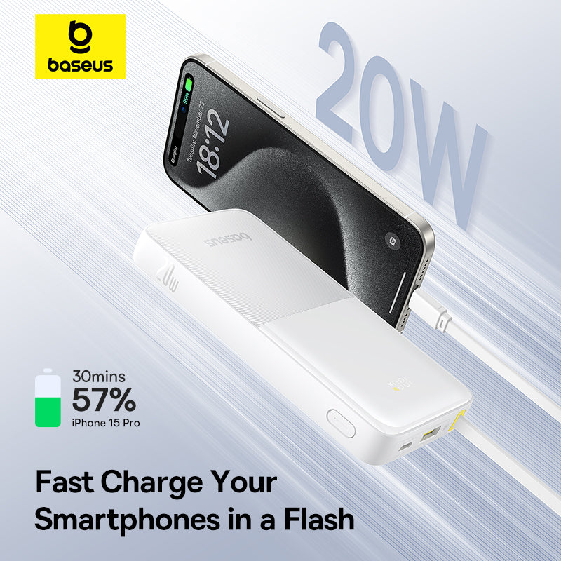 Power Bank Baseus Bipow 10000mAh 20W je kompaktní a vysoce kapacitní powerbanka určená pro cestování. Díky 20W výstupu nabízí rychlé nabíjení chytrých telefonů, tabletů a dalších zařízení. Vestavěný kabel typu C umožňuje pohodlné nabíjení bez dalších kabelů. Porty USB A a USB C umožňují nabíjet více zařízení najednou. Digitální displej zobrazuje zbývající energii a stav nabíjení. Hmotnost 271 ga tenký profil usnadňují přenášení do kapsy či tašky. Zabezpečení proti přebití, nadměrnému vybití a zkratu zajišťuje bezpečné používání.