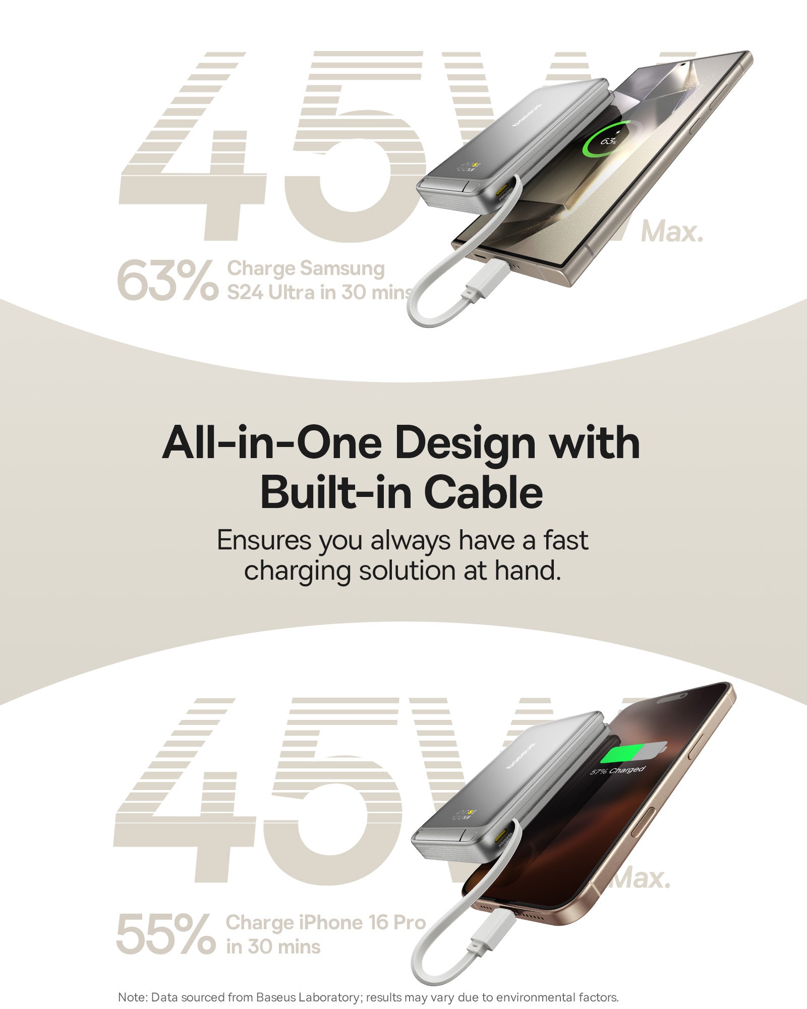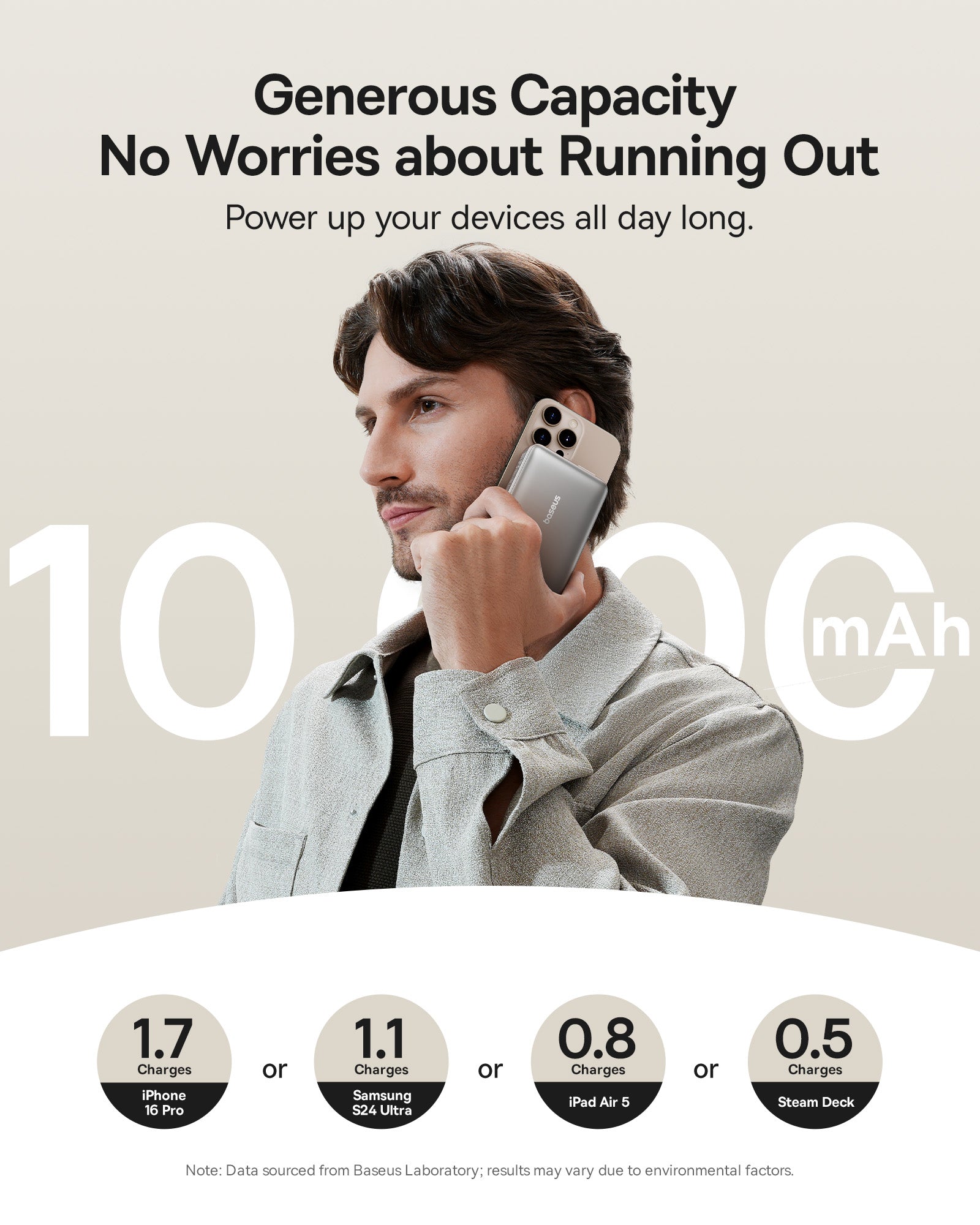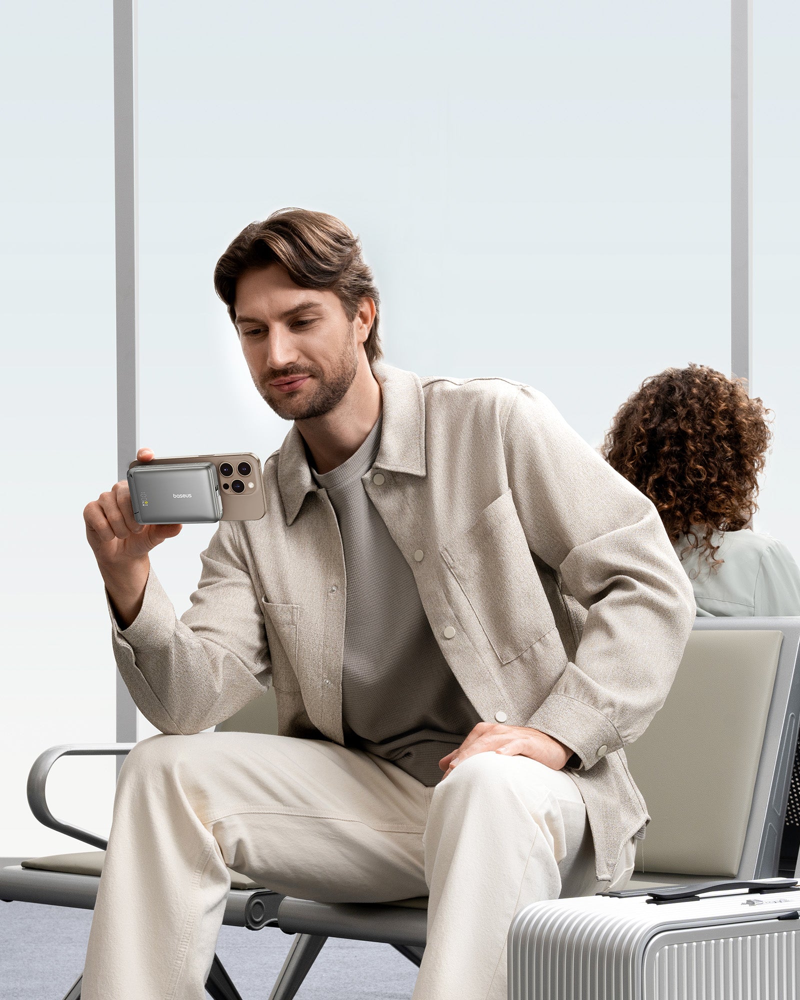 Powerbanka Baseus Nomos Qi2 10000mAh, 45W, s kabelem USB-C šedá