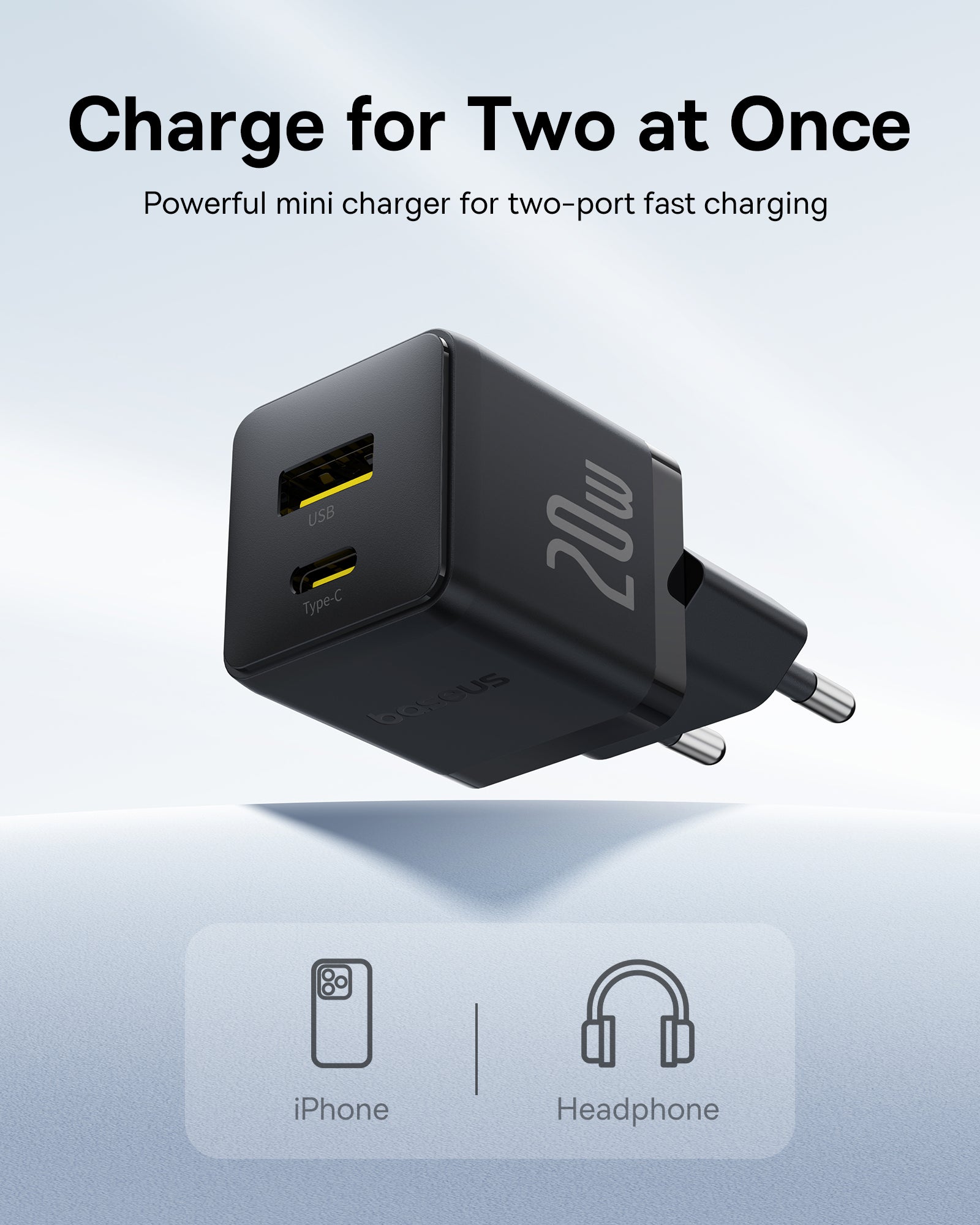 Nabíječka do sítě Baseus Palm 20W, 1xUSB, 1xUSB-C černá