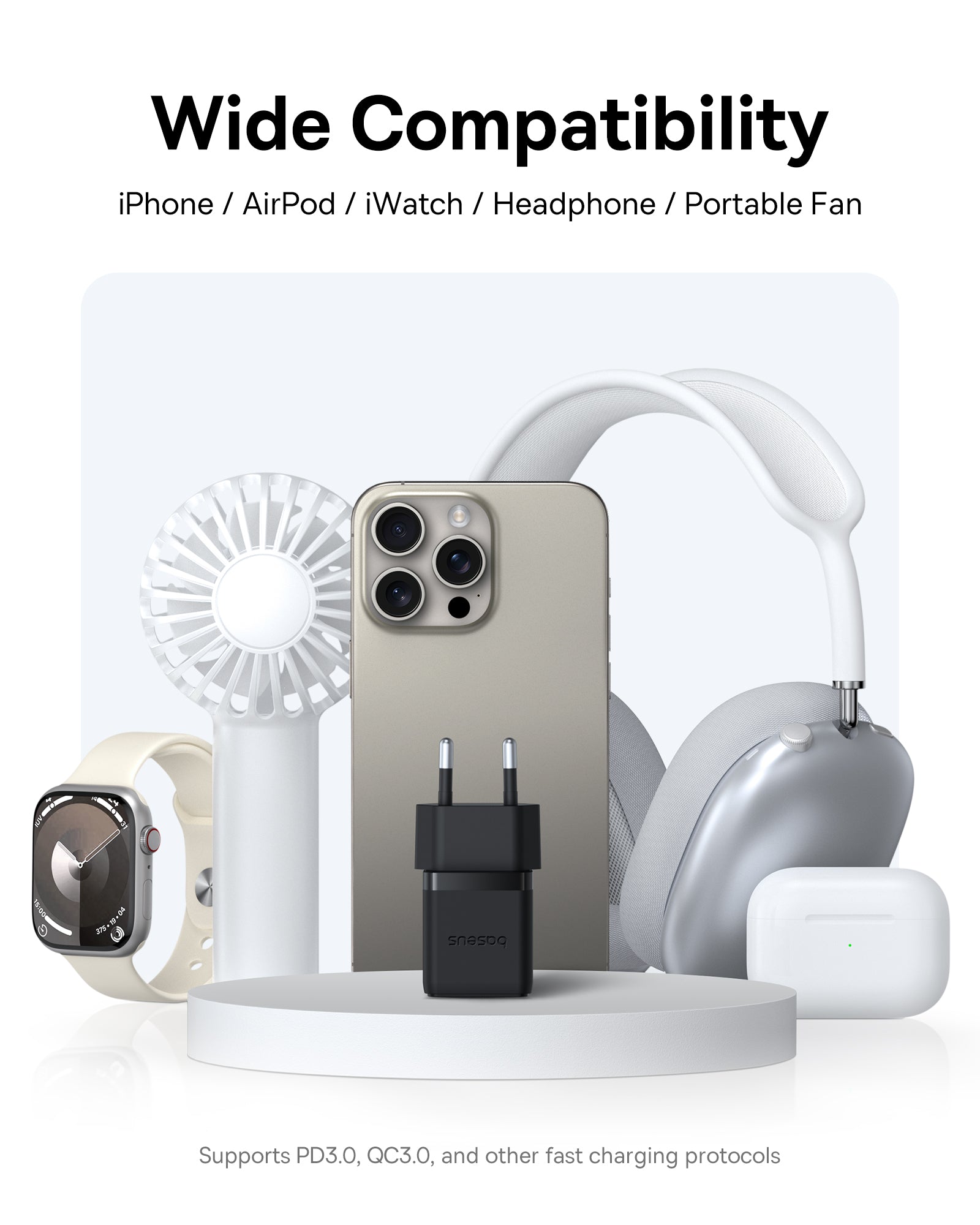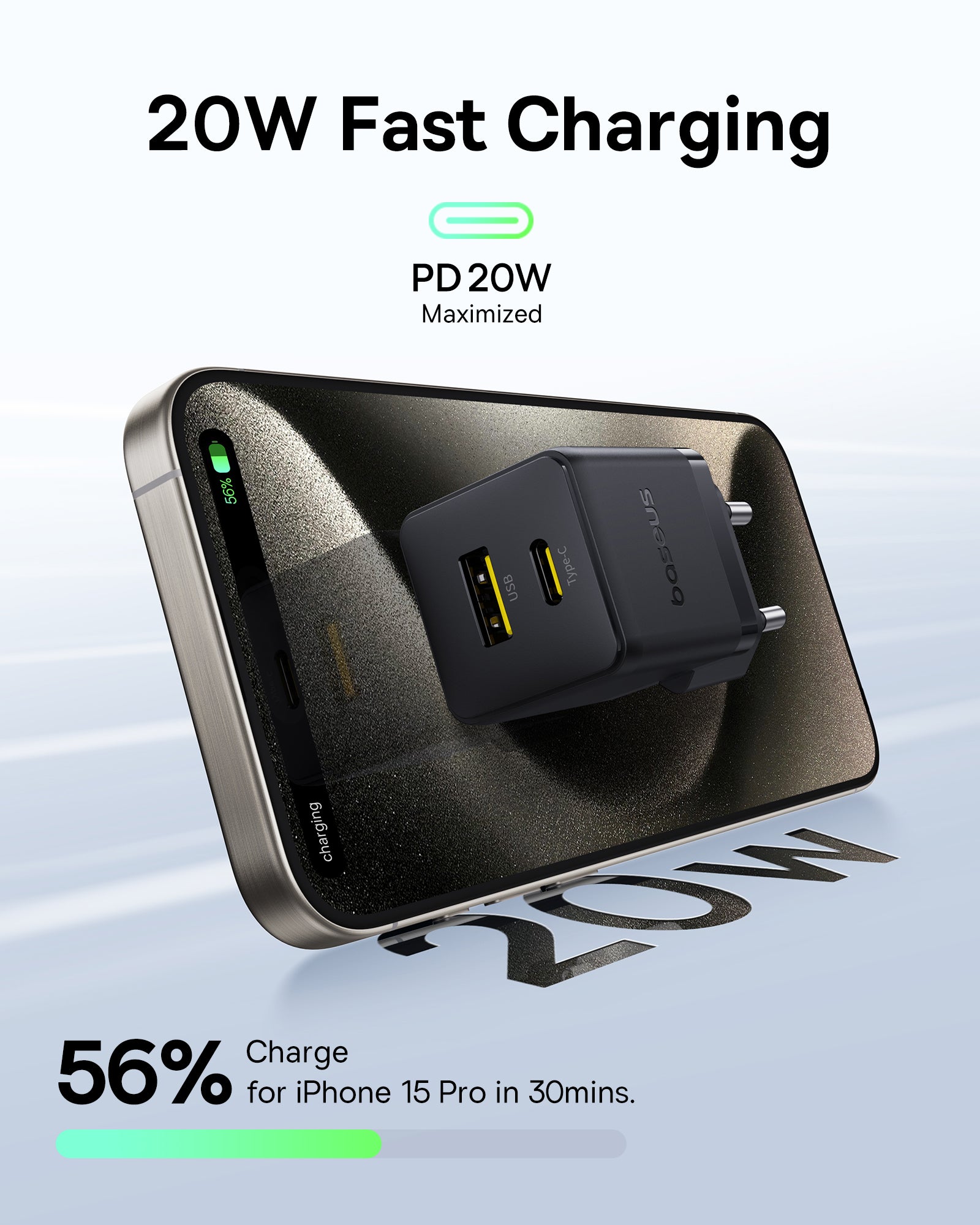 Nabíječka Baseus Palm je kompaktní a výkonný adaptér s podporou rychlého nabíjení. Disponuje dvěma výstupy (USB‑A a USB‑C) a maximálním výkonem 20 W. Podporuje PD3.0 a QC3.0 a doplňuje její Baseus Cooling Technology (BCT), která inteligentně řídí teplotu a zajišťuje optimální odvod tepla i během náročného používání. Nabíječka nabízí 9 ochranných prvků pro bezpečné nabíjení. S vstupem AC 100–240 V je vhodná pro domácí, kancelářské i cestovní použití. Díky kompaktním rozměrům ji snadno přenesete a můžete nabíjet jedno či dvě zařízení najednou.