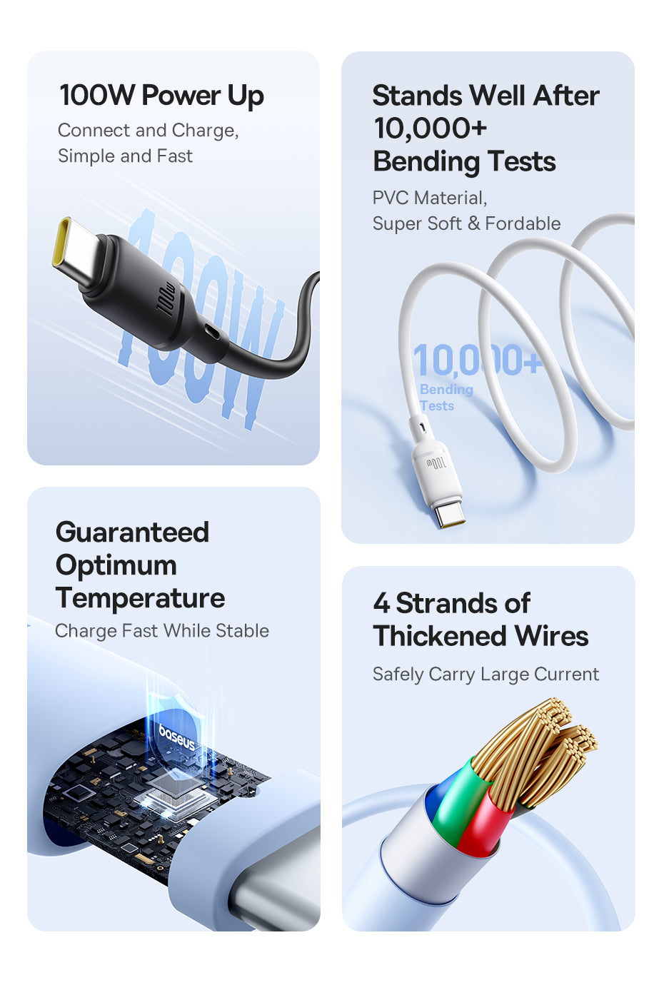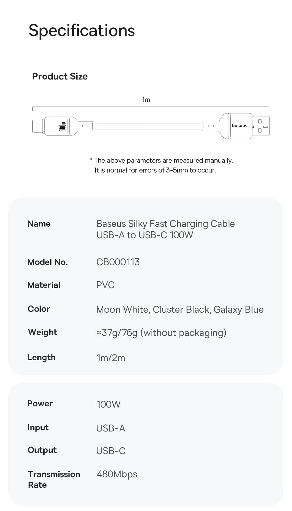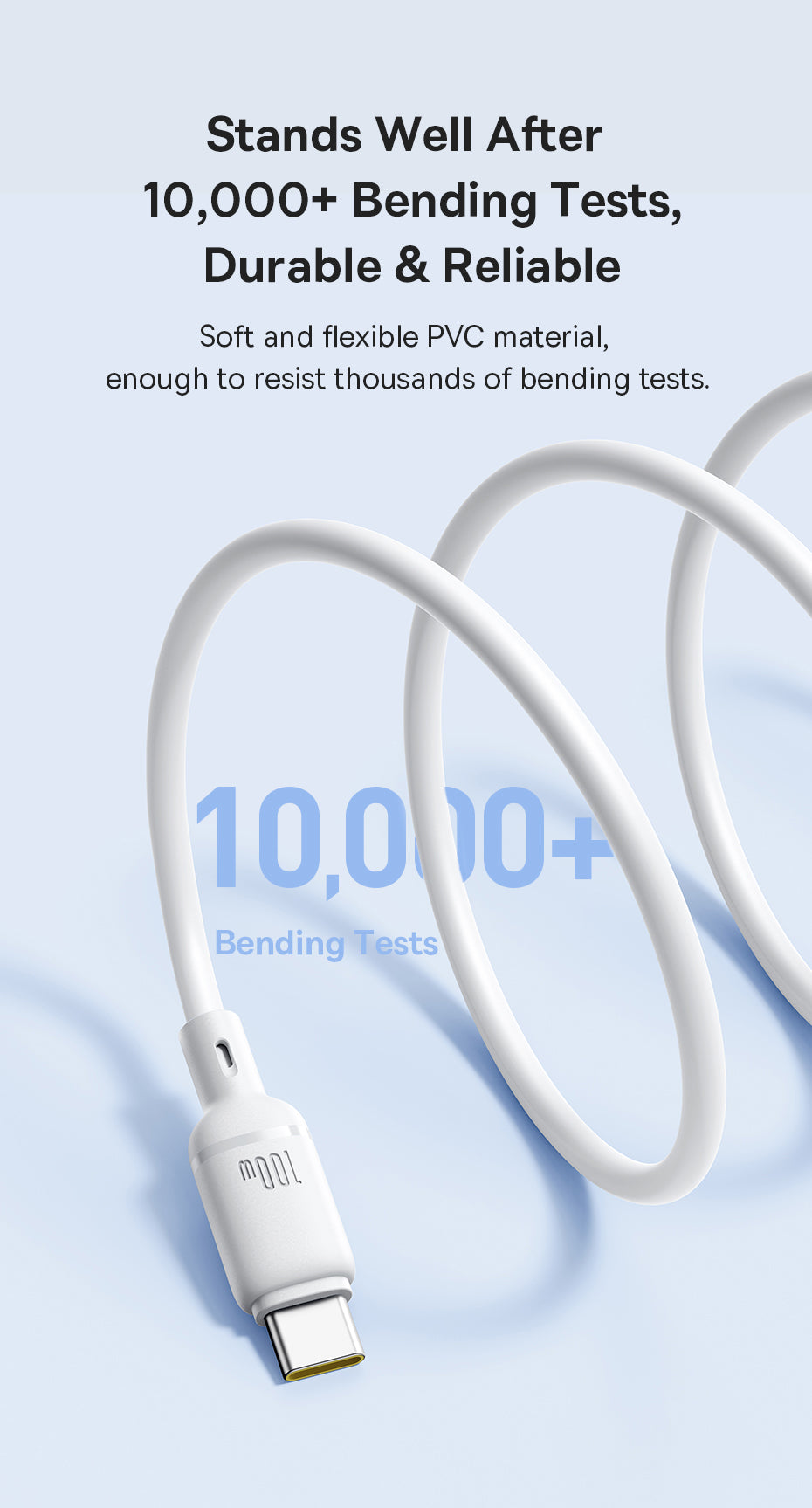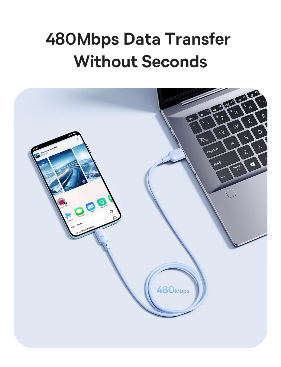 Baseus Silky je měkký a odolný nabíjecí kabel s podporou 100 W Power Delivery (PD). Je vhodný pro rychlé nabíjení iPhonu a dalších kompatibilních zařízení. Vyráběný z pružného PVC materiálu, odolný vůči ohýbání a lámání, což prodlužuje životnost. Díky inteligentnímu čipu automaticky rozpozná připojené zařízení a optimalizuje proud i napětí pro bezpečné a efektivní nabíjení bez přehřívání. Podporuje datový přenos rychlostí až 480 Mb/s (USB 3.0) pro rychlou synchronizaci souborů.