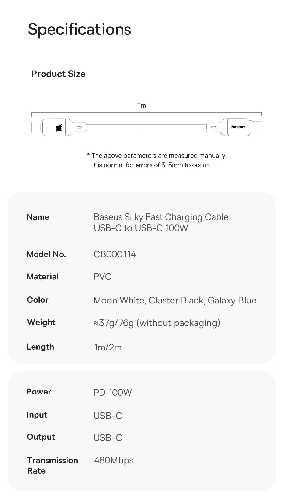 Kabel Baseus Silky USB-C/USB-C 1m 100W černý
