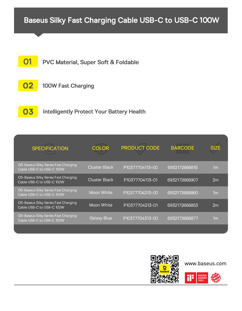 Baseus Silky je měkký a odolný nabíjecí kabel s podporou 100 W Power Delivery (PD). Je ideální pro rychlé nabíjení iPhonů a dalších kompatibilních zařízení.