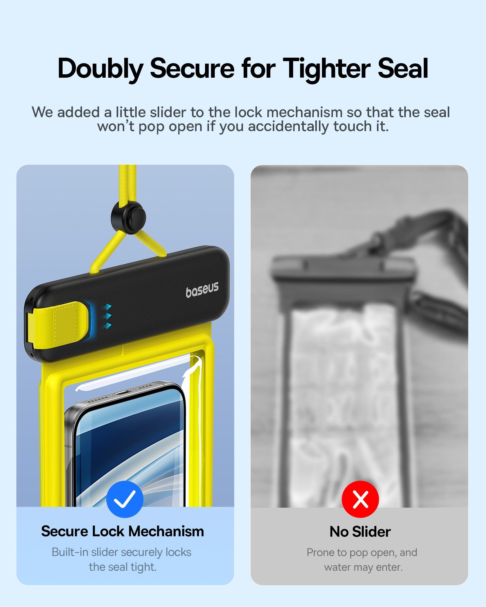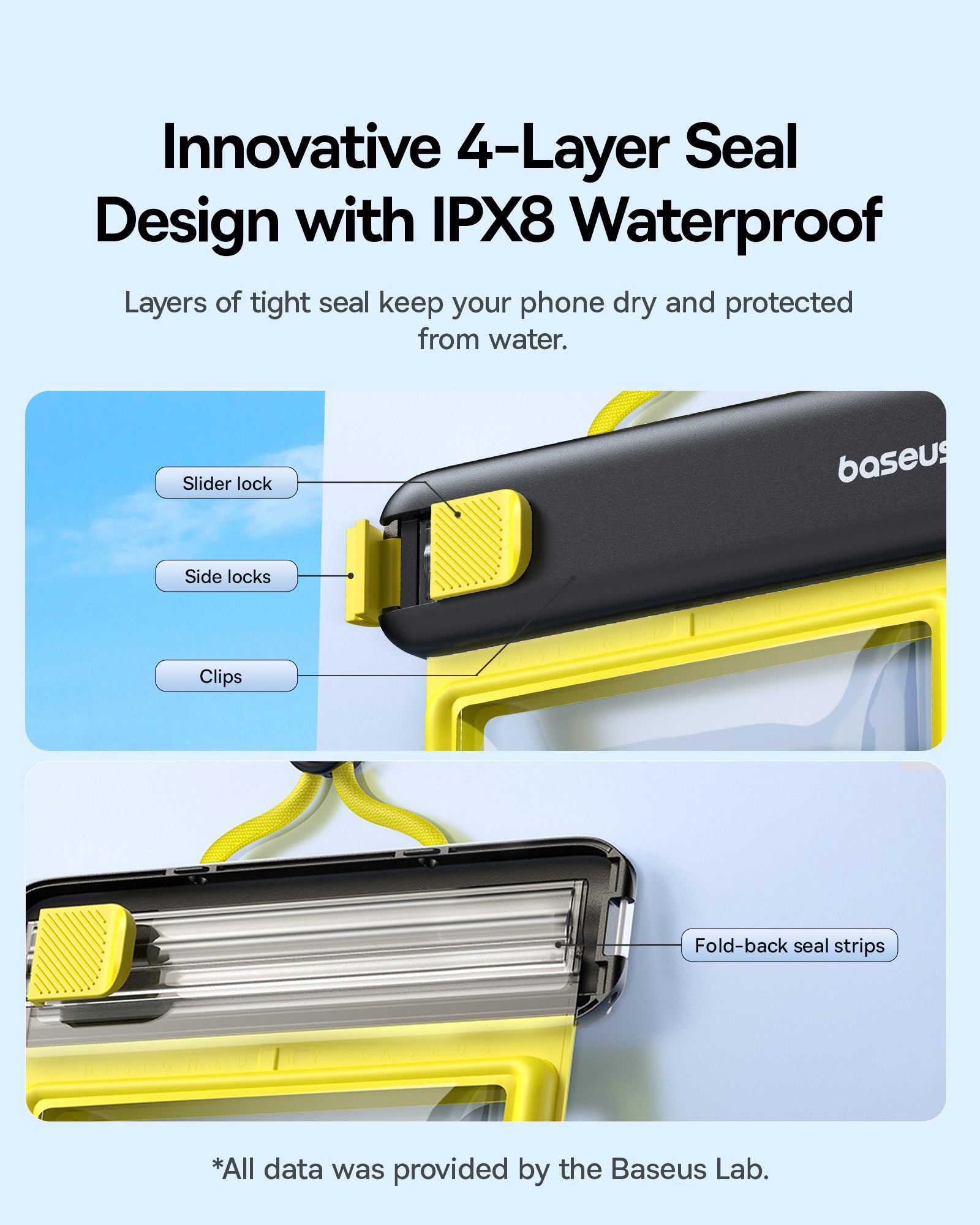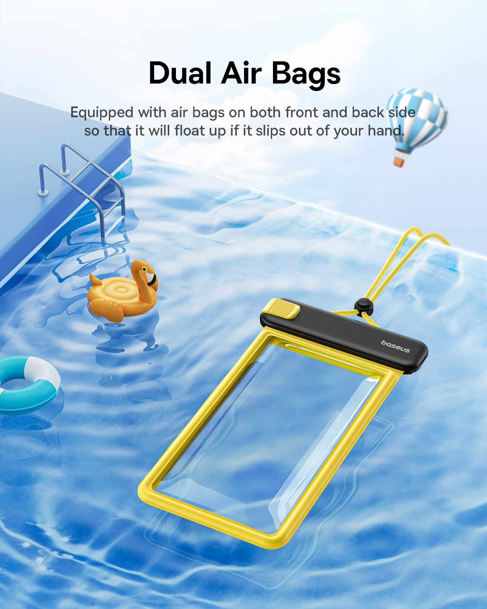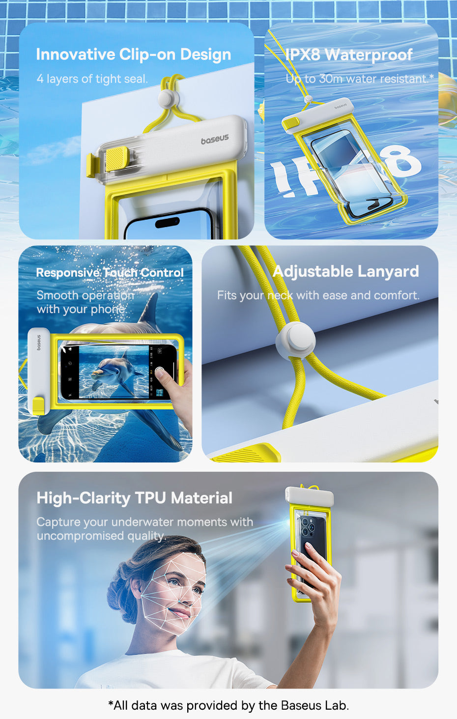 Voděodolné pouzdro Baseus DeepDive poskytuje spolehlivou ochranu pro smartphone při vodních sportech iv náročných podmínkách. Nabízí plnou ochranu proti vodě a pádům a umožňuje používat telefon bez vyjmutí z pouzdra, takže můžete pořizovat atmosférické fotografie i pod vodou. Pouzdro má zavírací mechanismus s jezdcem a čtyřvrstvé těsnění pro úroveň IPX8. Proti pádu slouží vzduchové polštářky na přední i zadní straně a součástí je šňůrka z materiálů šetrných k pokožce. TPU materiál zajišťuje zachování citlivosti dotykové obrazovky a neovlivňuje kvalitu fotografií, takže ovládání telefonu zůstává jisté i při ponoření.