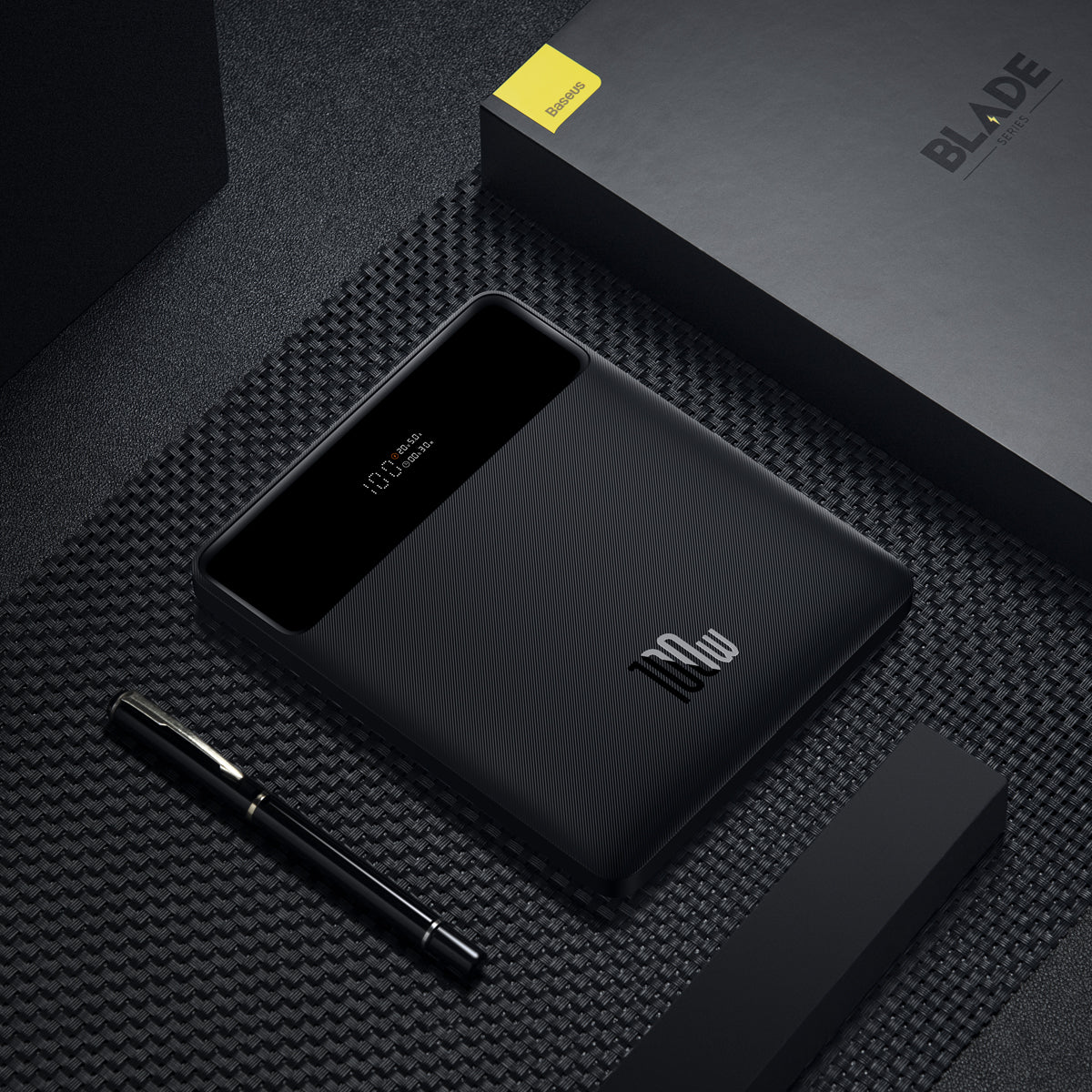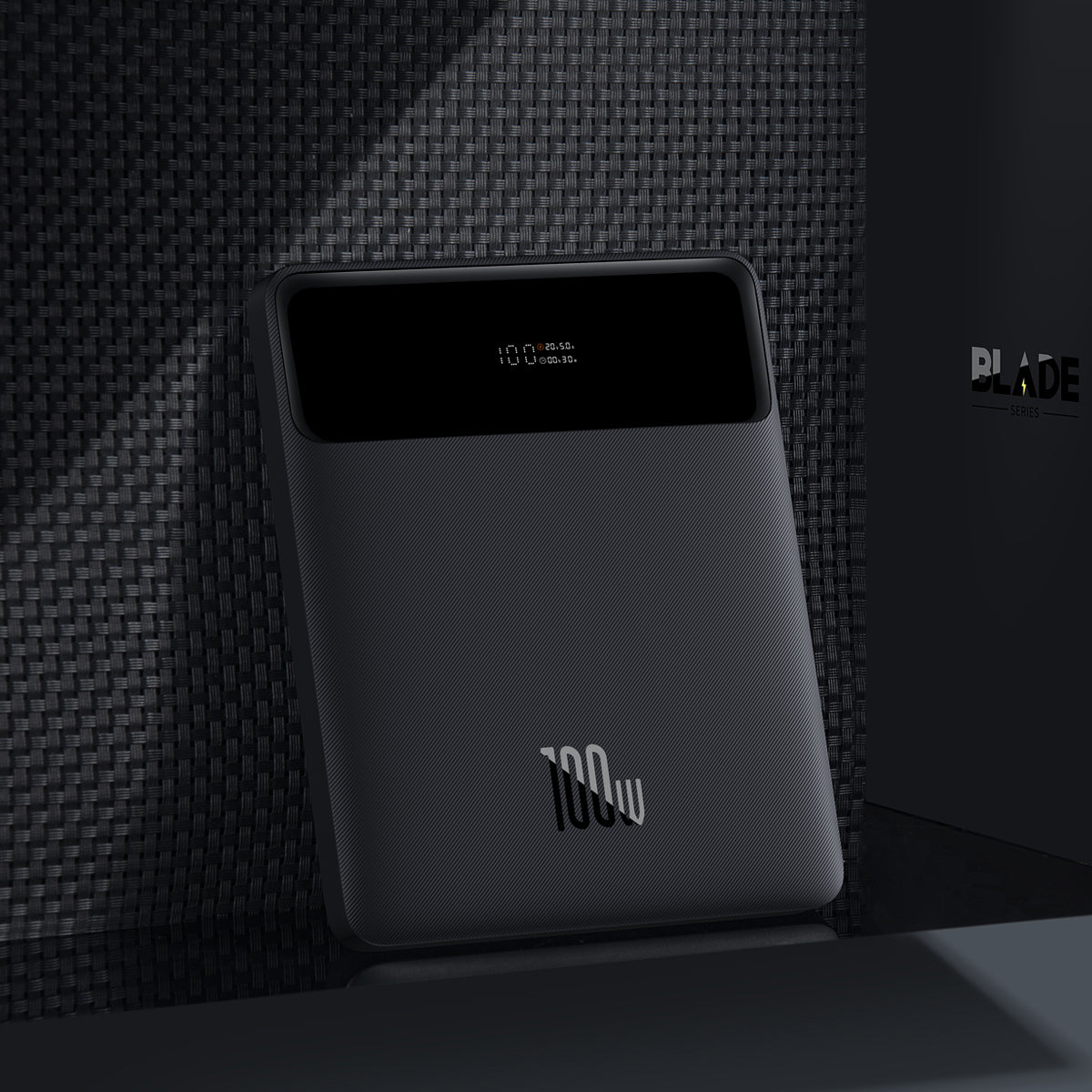 Baseus Blade je výkonná powerbanka s kapacitou 20000 mAh a vysokým nabíjecím výkonem až 100 W. Disponuje čtyřmi porty (2× USB‑A, 2× USB‑C) a předním displejem, který zobrazuje zbývající energii a odhadovaný čas nabíjení. Konstrukce je lehká (cca 490 g) a tenká (< 18 mm) díky kombinaci materiálů ABS a PC, s pohodlným úchopem. Certifikace RoHS, FCC a CE potvrzují bezpečnost; teplotní čidlo NTC sleduje teplotu během provozu. součástí balení je USB-C kabel; powerbanka umožňuje nabíjet až čtyři zařízení současně. Technologie BPSII optimalizuje proud podle zařízení a chrání jej před přebitím, nadměrným vybitím, přepětím, přehřátím a zkratem. Příklady výkonu: MacBook Pro 13 nabije až 39 % za 30 minut; při max. 65 W je rychlejší (~90 minut). Vhodná na cestu i při delších výpadcích proudu; je kompatibilní s většinou zařízení napájených přes USB‑A/USB‑C a je vhodný i na palubu letadla.