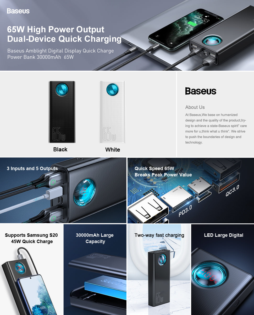 | Model | Baseus Amblight Digital Display Fast Charge Power Bank 30000mAh Black Overseas Edition |