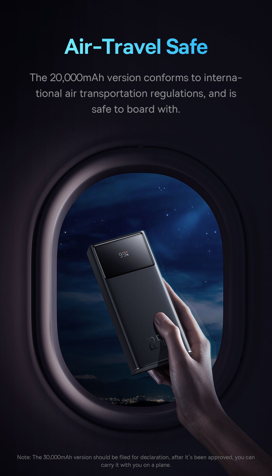 Nabíjejte až tři zařízení najednou díky powerbance Baseus Star-Lord s výkonem 22,5 W a kapacitou 20000 mAh. Kompaktní rozměry 154,8 × 69,4 × 29,5 mm a hmotnost 450 g umožnit snadné přenášení a cestování, včetně letadla.
