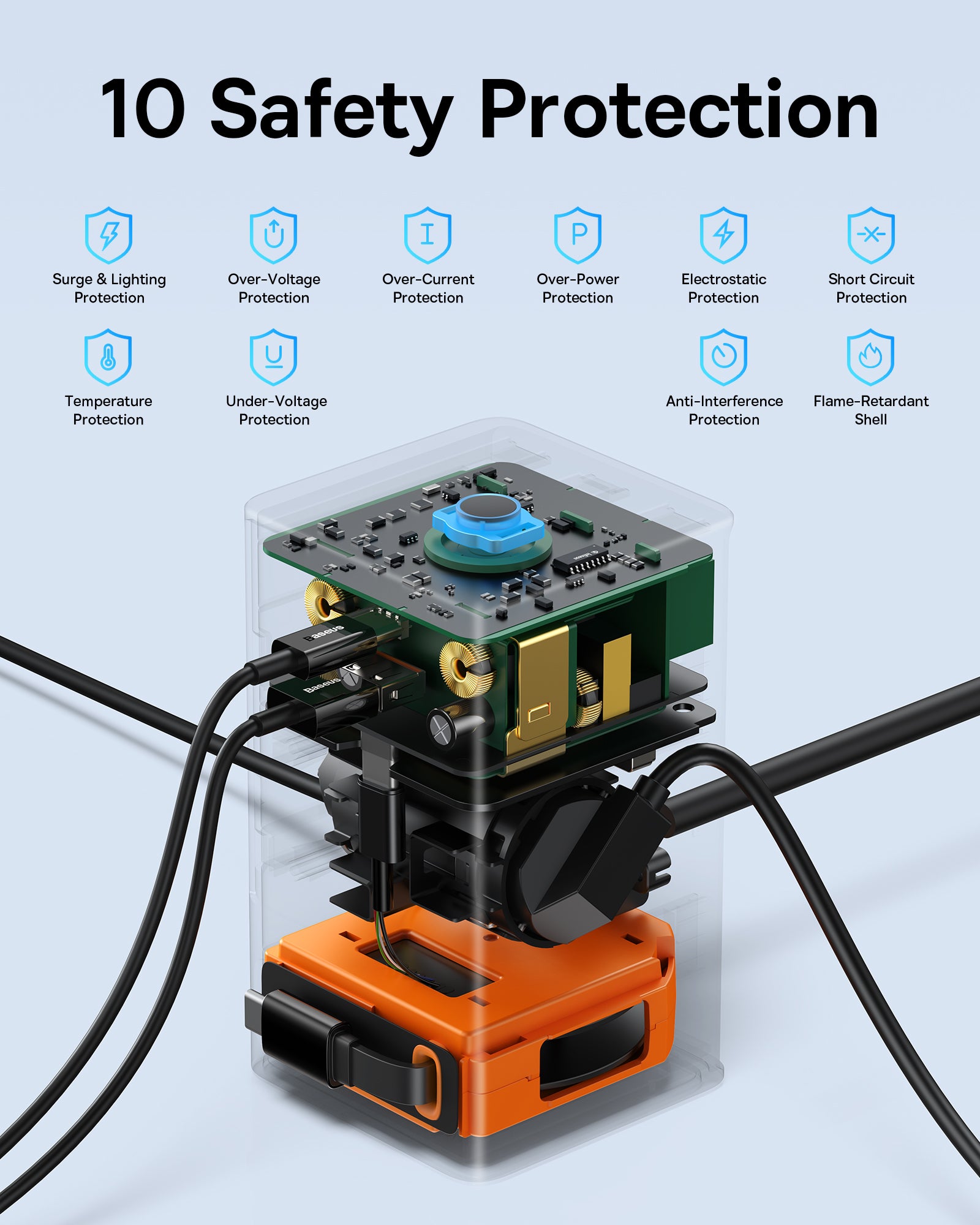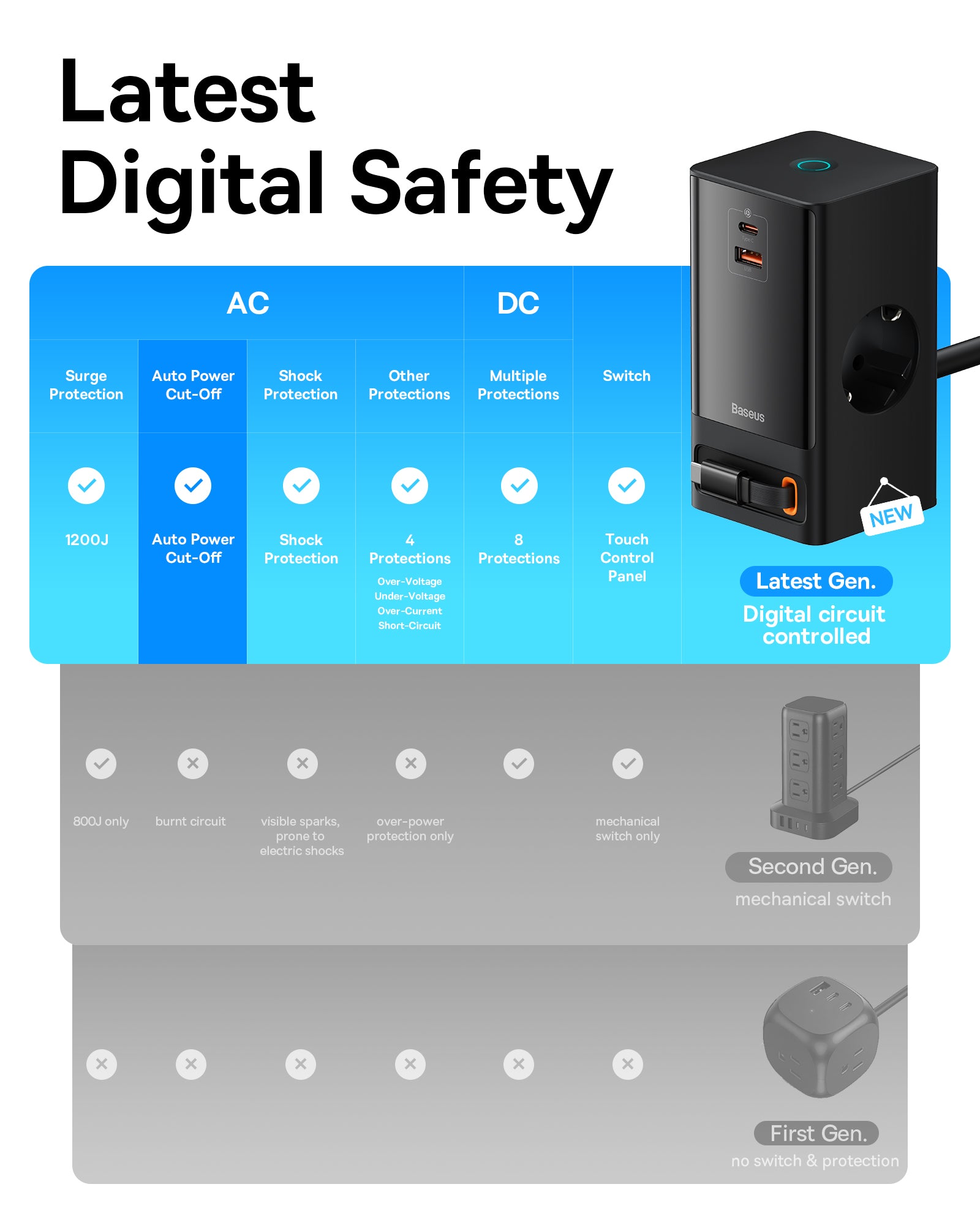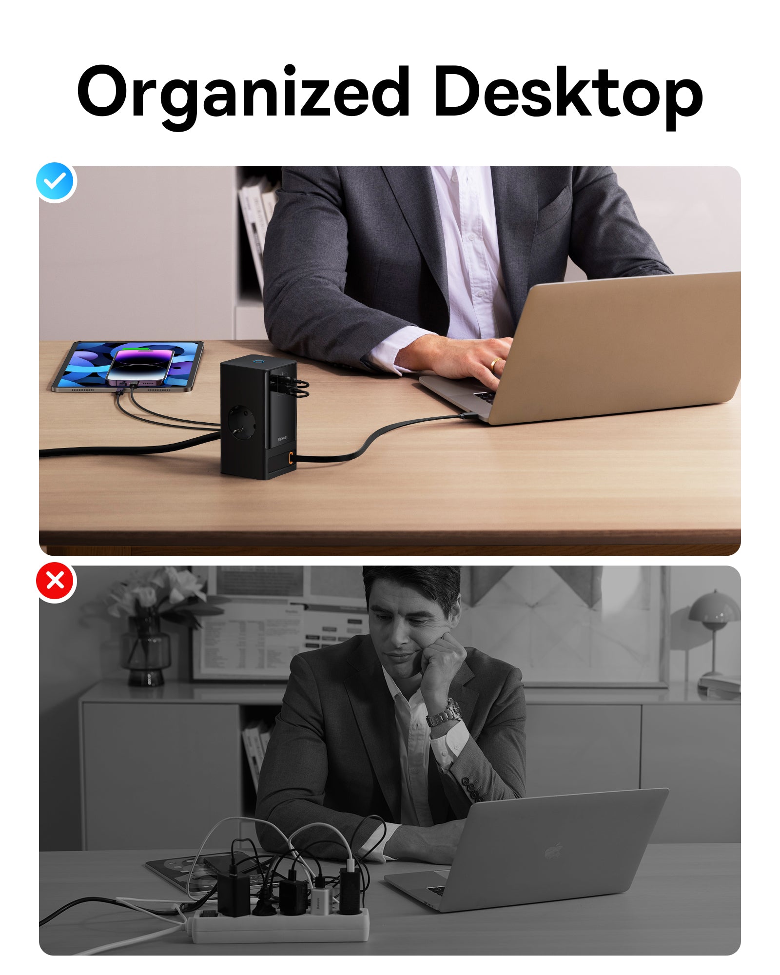 Baseus PSLR000301 je spolehlivá síťová nabíječka pro nabíjení více zařízení najednou. Disponuje třemi porty: USB‑C, USB a síťovým výstupem, a díky možnosti připojení dalšího nabíjecího kabelu udrží pořádek na pracovním stole. Součástí balení je 65 W nabíjecí kabel o délce 80 cm, který lze magneticky připnout ke stojanu a zjednodušit správu kabelů. Kabel umožňuje rychlé nabíjení; propojená zařízení lze nabíjet rychlostí až 3 A na jednotlivé výstupy v různých režimech, prakticky dle potřeby. Nabíječka je vyrobena z odolného PC a vybavena vícevrstvou ochranou proti úrazu a poškození materiálu, která zajišťuje bezpečně spolehlivé používání. Ovládání je jednoduché díky dotykovému ovládání; konstrukce je navržena pro dlouhou životnost a tiché fungování, ideální do kanceláří i domácností. Podpora více zařízení zefektivní správy energie i kabelů na stole.