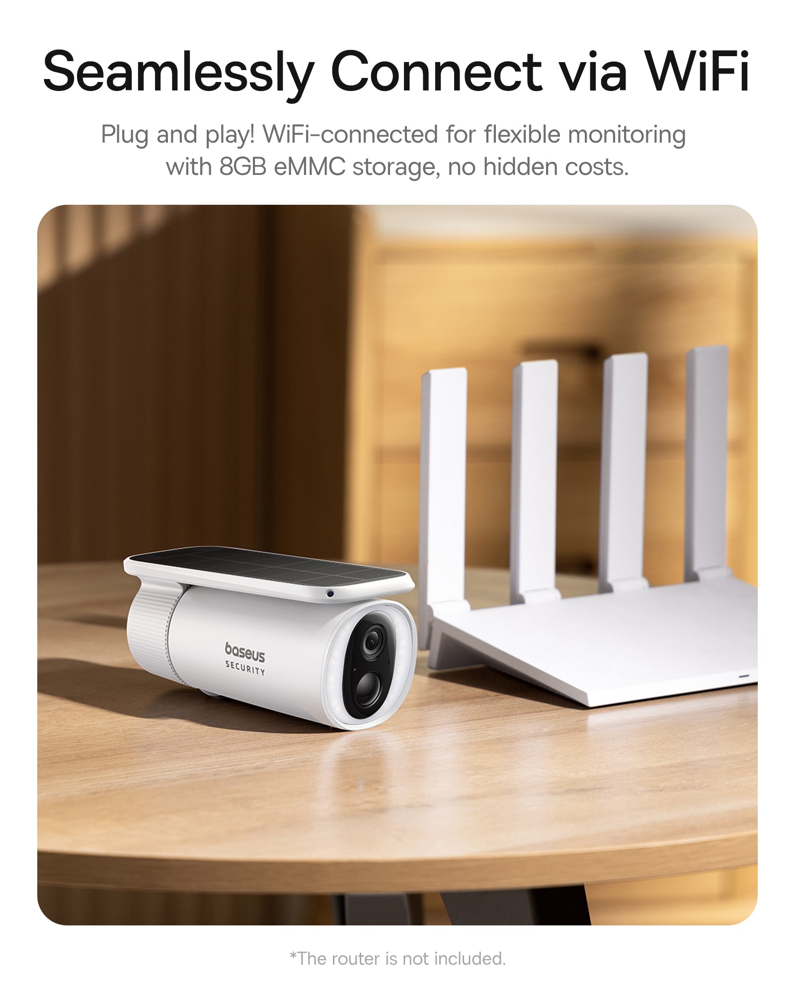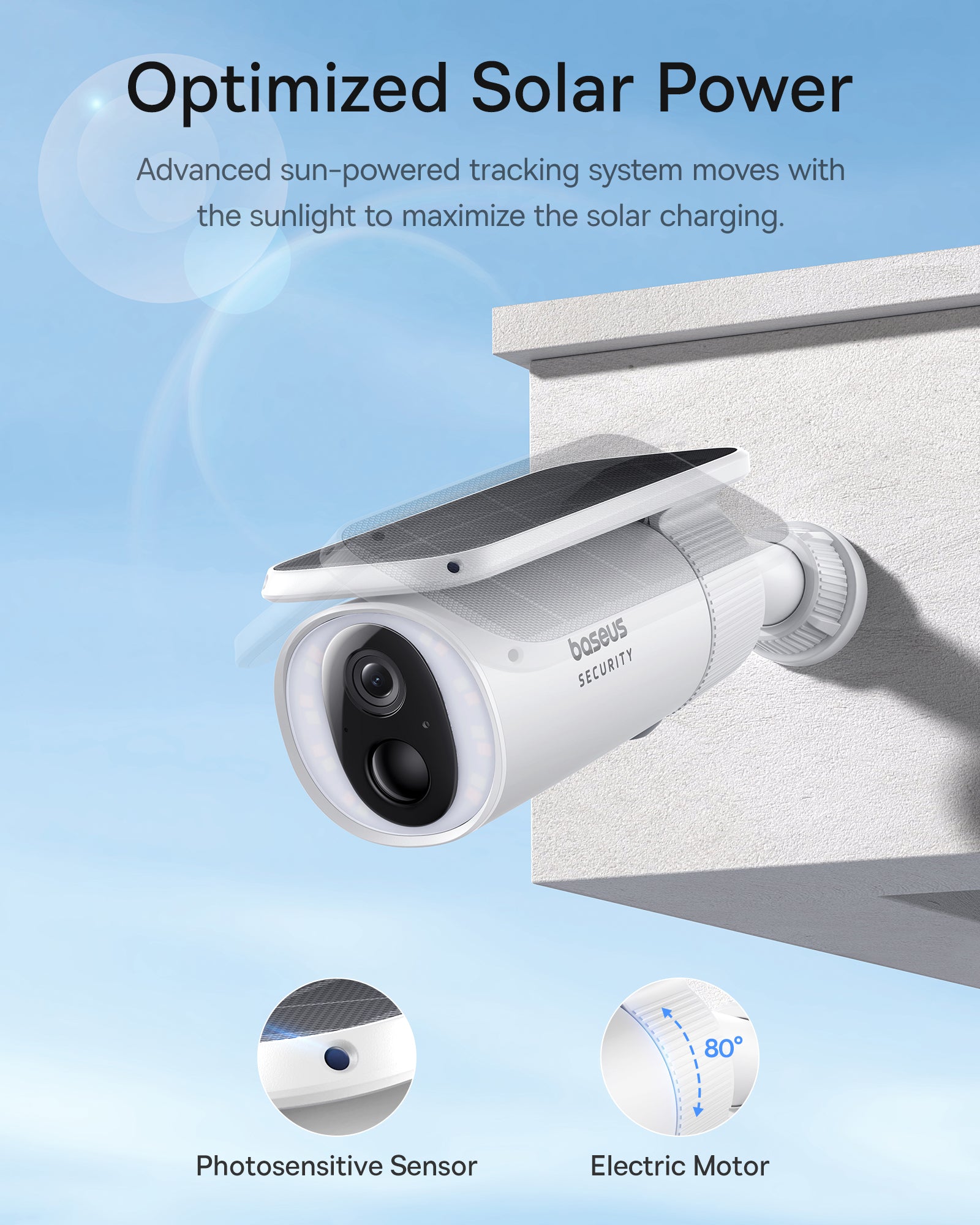 Solární kamera poskytuje nepřetržitý dohled bez kabelů. S pohybem 40° vlevo/vpravo je sluneční expozice maximální a stabilní napájení. Baterie 10400 mAh vydrží až 180 dní na jedno nabití. Video je ve 2K rozlišení se širokým 145° záběrem pro ostré detaily na velkém prostoru. AI detekce rozpozná lidi, umožní nastavit zóny aktivity a filtrovat nežádoucí zóny. Barevné noční vidění s 400 lm dosáhnete až 8 m. Uložení zajišťuje 8GB EMMC bez dalších poplatků, přičemž záznamy mohou být uložené až na 1,5 měsíce. Obousměrný zvuk s potlačením šumu dosáhne komunikace. IP67 a provozní teploty -20 °C až 50 °C zaručují funkčnost venku po celý rok. Snadná instalace pro kutily.