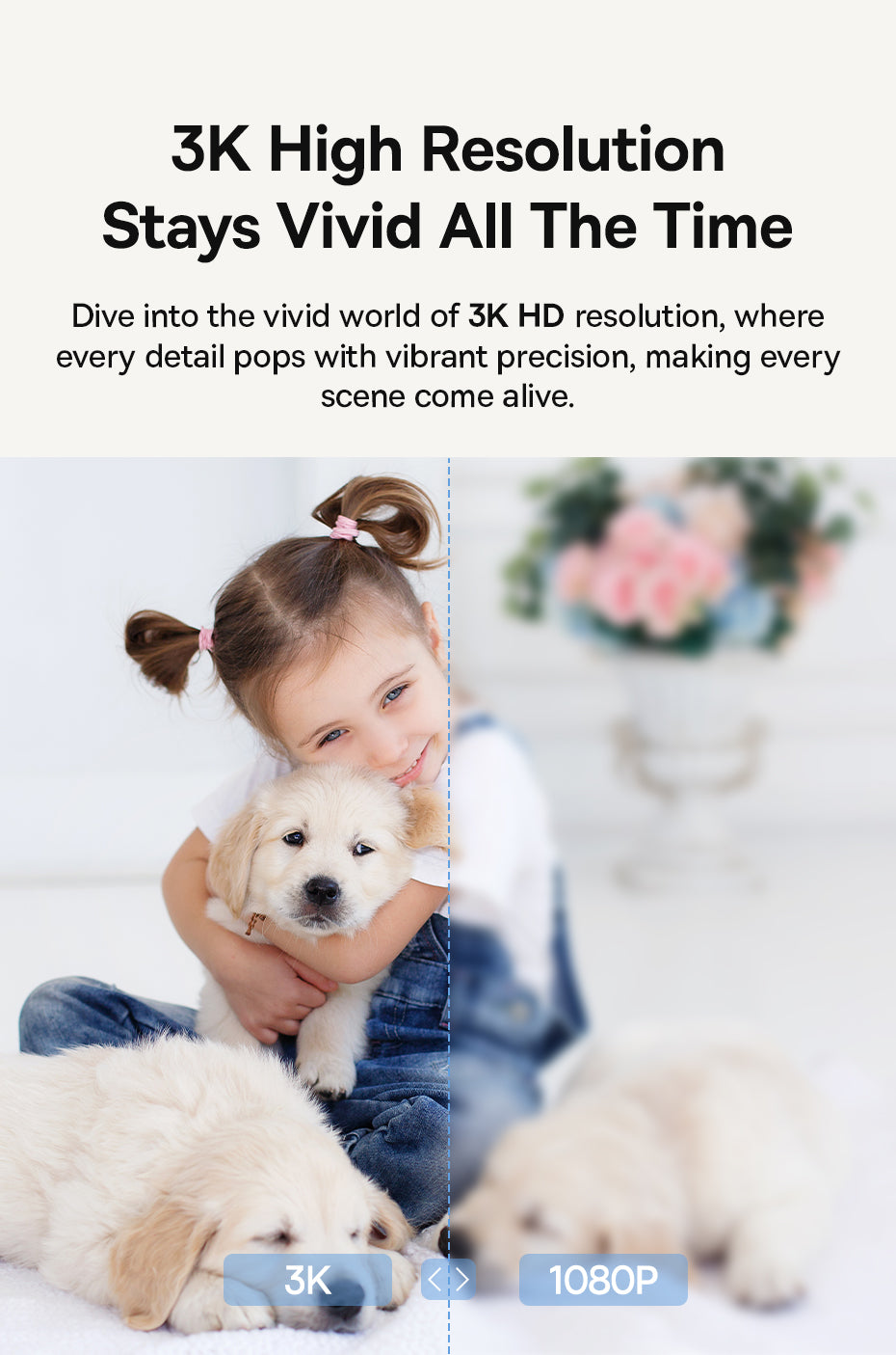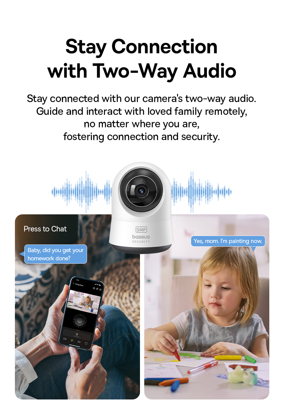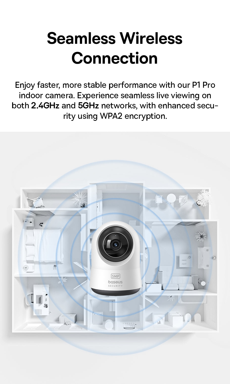Baseus P1 Pro 3K je vnitřní kamera pro sledování s vysokou kvalitou obrazu a nejnovějšími funkcemi. Rozlišení 3K HD zajišťuje ostré detaily i při horším osvětlení díky infračerveným LED diodám.