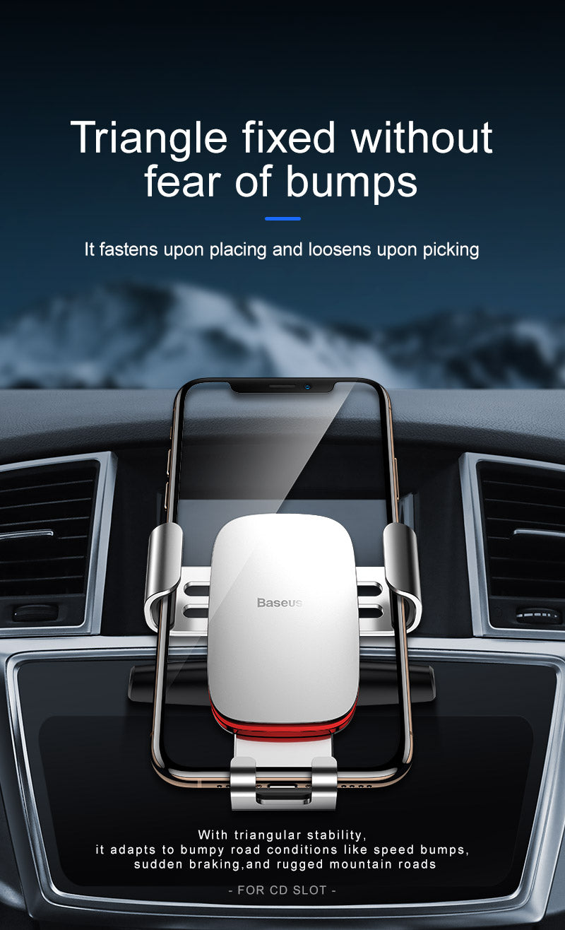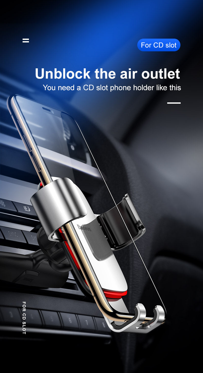 Metal Age Gravity Car Mount (CD verze) je držák do auta, který se pevně uchytí do slotu pro CD. Díky gravitační technologii se automaticky utáhne podle hmotnosti vloženého zařízení a zajistí stabilní držení i na náročných cestách. Silná svorka zůstane měkkým pohybu telefonu a trojúhelníkové konstrukce s silikonovými podložkami chrání povrch telefonu i CD. Držák nepřekáže při přehrávání disků a umožňuje plný výhled na cestu. Instalace je snadná – vložím do slotu CD bez nářadí. Možnost nastavitelný 360° otočný kloub pro optimální úhel pohledu. Povrchová úprava je trvalá; vyrobeno z hliníkové slitiny, silikonu a ABS; barva černá. Kompatibilní s telefony šířky 50–92 mm. Výška 115 mm. Model SUYL-J01.